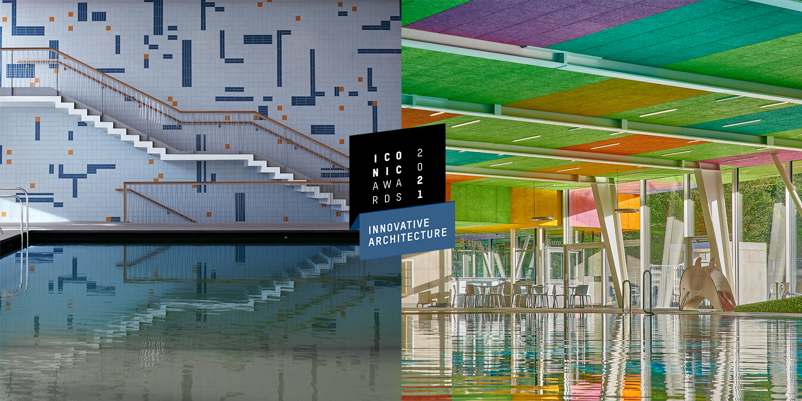 Beim Iconic Awards for Innovative Architecture 2021 konnten in diesem Jahr gleich zwei Sanierungen von 4a Architekten die Jury überzeugen. In der Kategorie "Architecture" wurde das Mineralbad Berg mit Winner ausgezeichnet, der Badepark Vitalbad Kusel erhielt die Auszeichnung Selection.