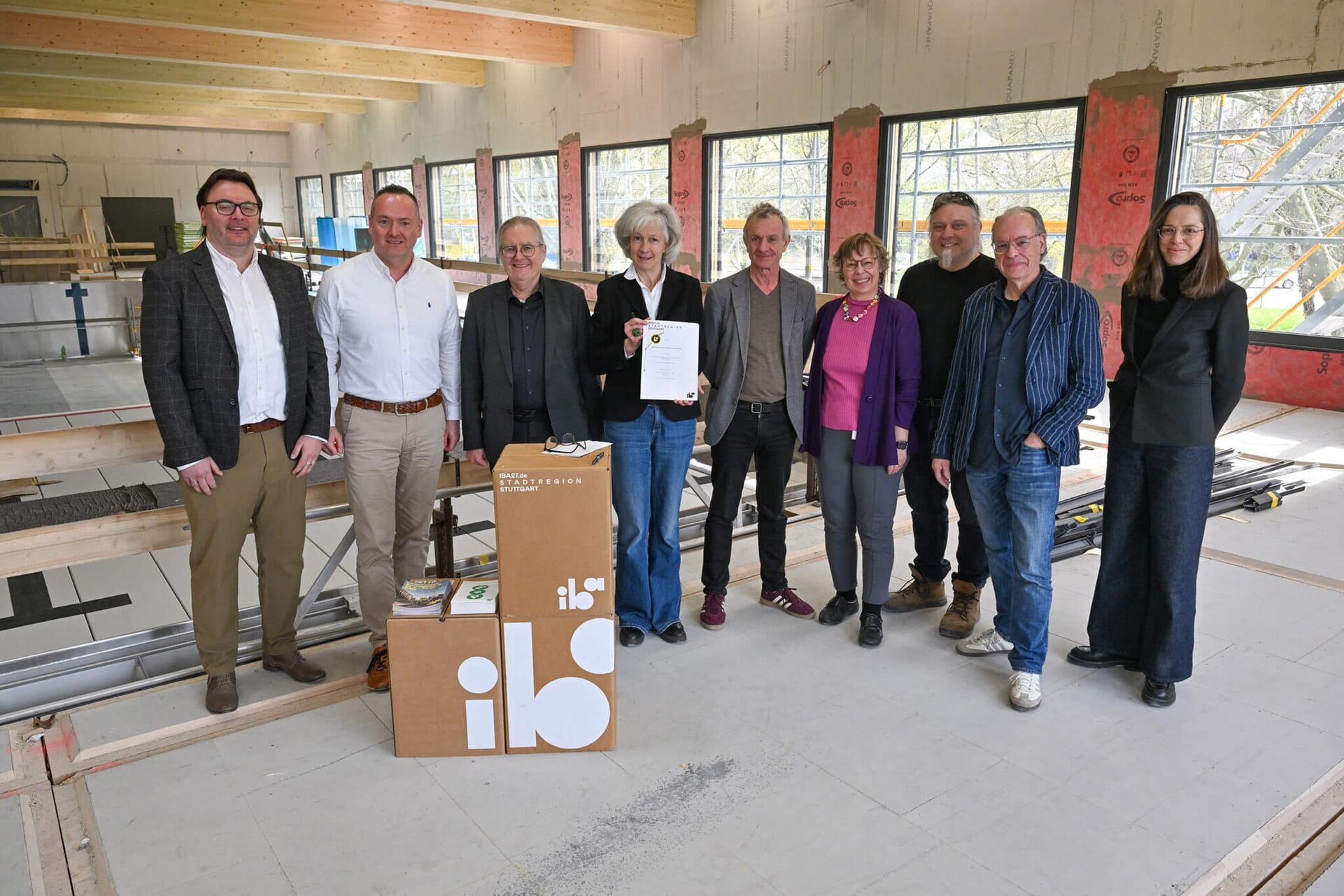 Die Internationale Bauausstellung 2027 StadtRegion Stuttgart (IBA’27) und die Landeshauptstadt Stuttgart haben am Dienstag, 24. März 2026, eine Kooperationsvereinbarung für das mobile Hallenbad »Aquabox« unterzeichnet. Damit ist das Vorhaben eines von nun 37 offiziellen IBA’27-Projekten. Mit dem innerhalb weniger Wochen aus vorgefertigten Holzmodulen errichteten Gebäude entsteht in Stuttgart ein europaweit neuartiger Gebäudetyp: ein versetzbares Hallenbad in Holzmodulbauweise, das flexibel an verschiedenen Standorten eingesetzt werden kann.