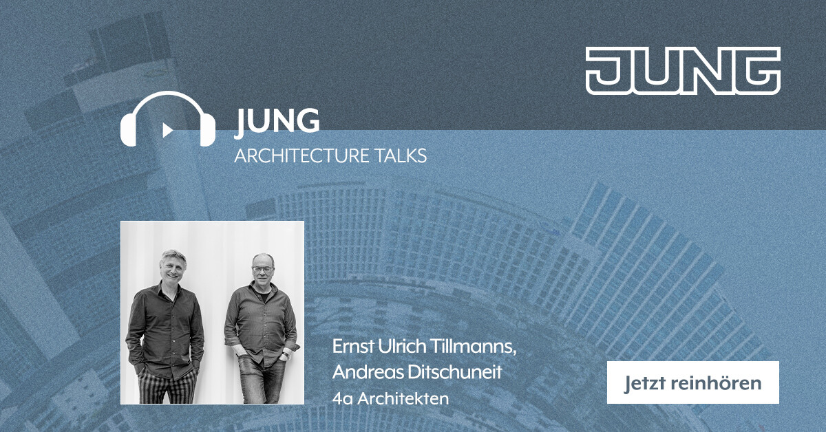 Offen, unterhaltsam, anregend – und mit einer ganz persönlichen Note geben die JUNG Architekturgespräche Einblick in ihre Arbeit und Denkweise von Architekten. Im aktuellen Podcast sind Andreas Ditschuneit und Ernst Ulrich Tillmanns im Gespräch mit Dijane Slavic und Wiebke Becker von JUNG. Es geht um die emotionale Wirkung von Räumen, um Atmosphäre und noch vieles mehr...