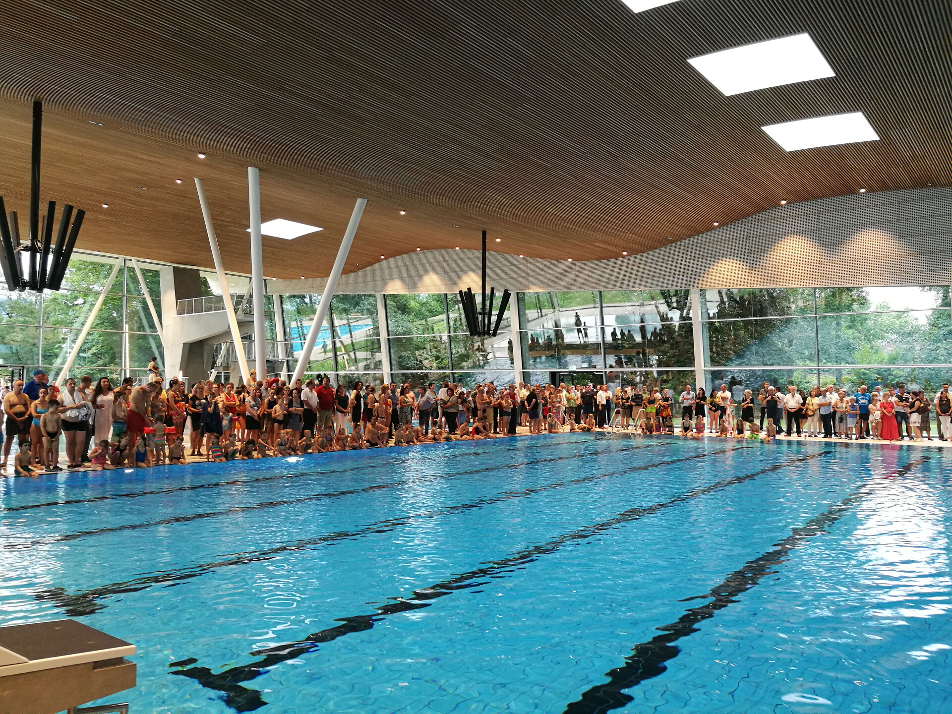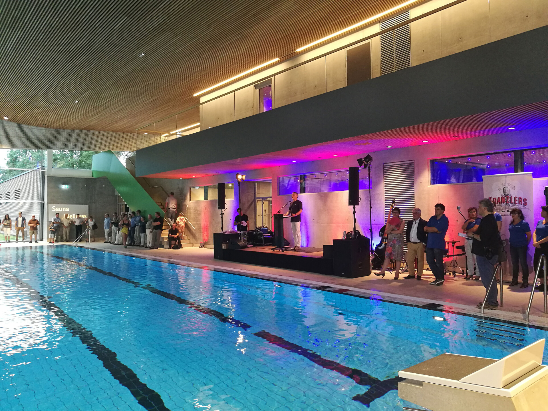 Die Bauarbeiten für das neue Freizeitbad Stegermatt in Offenburg liefen bis zum Schluss auf Hochtouren. Am Freitag, den 21. Juli wurde das Bad mit rund 250 geladenen Gästen offiziell eingeweiht. Bereits tags darauf startete der Badebetrieb für das Sport- und Freizeitbad mit seinem vielfältigen Angebot und lädt mit Sportbecken, Erlebnisbecken, Sprungtürmen, Rutschen sowie großzügigem Saunabereich zum Entspannen ein.