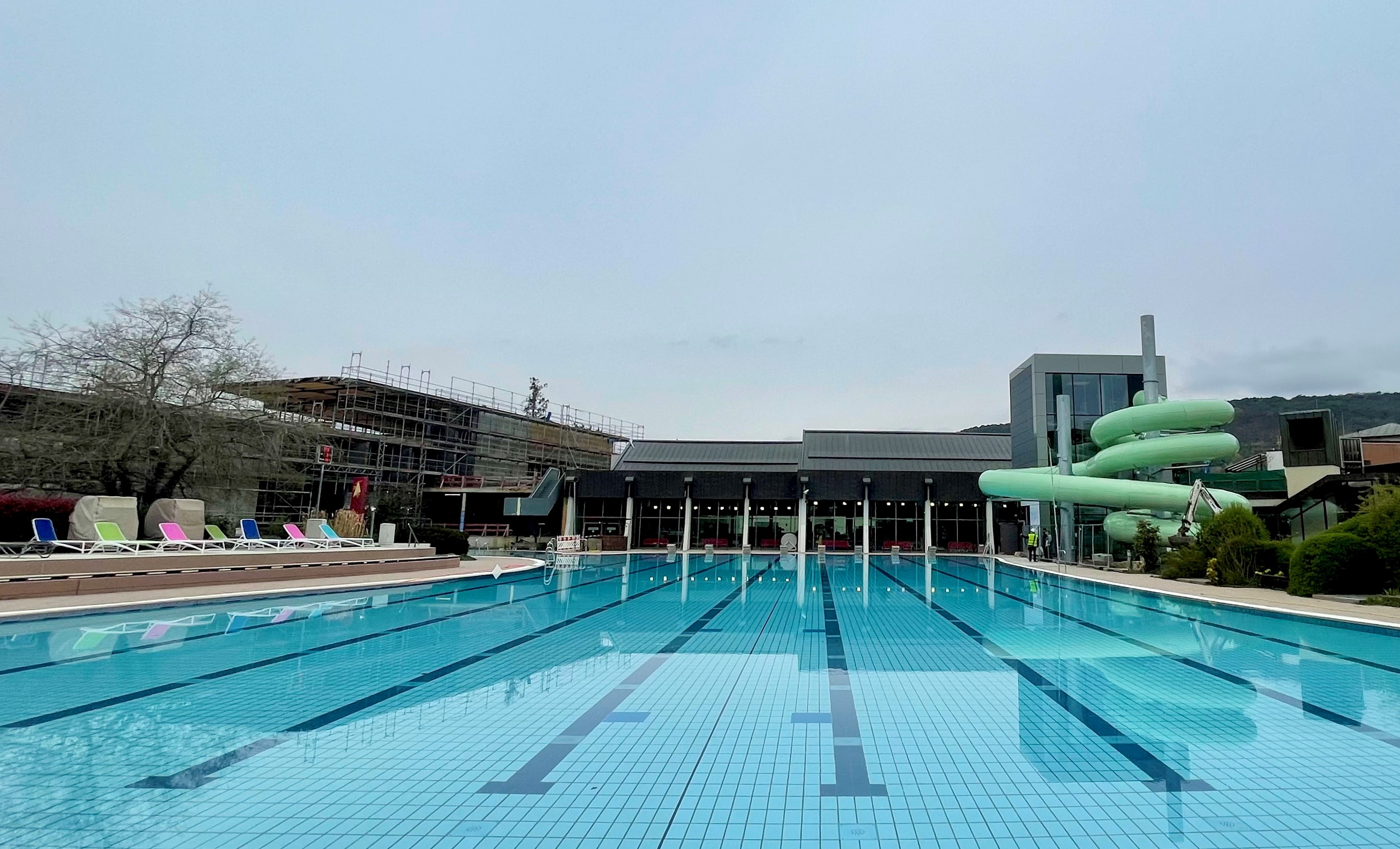 Am Wochenende wurde der Rutschenturm bei unserem laufenden Bäderprojekt in Bad Dürkheim eröffnet - und das während die Baumaßnahmen im vollen Gange sind. Denn die Erweiterung des Salinariums um einen Thermenbereich mit Saunalandschaft laufen straff weiter. Was uns dabei freut: Wir konnten mit der Rutsche die CO2-Bilanz des Bades verbessern. Denn auch wenn der Turm neu errichtet werden musste, die Rutsche selbst ist aus dem Bestand - und wurde zudem mit einer Dämmung versehen, um die Wärmeverluste zu verringern.