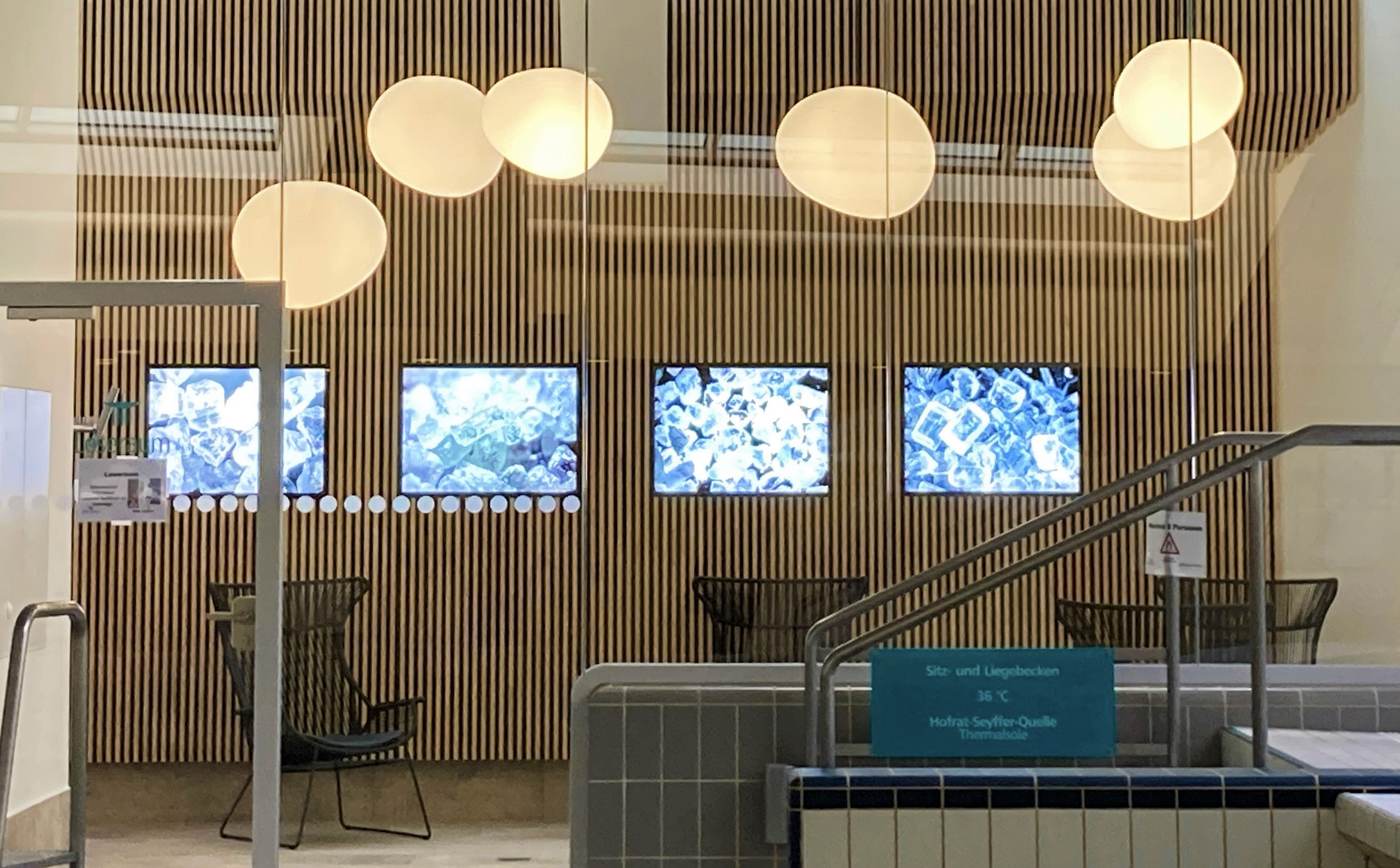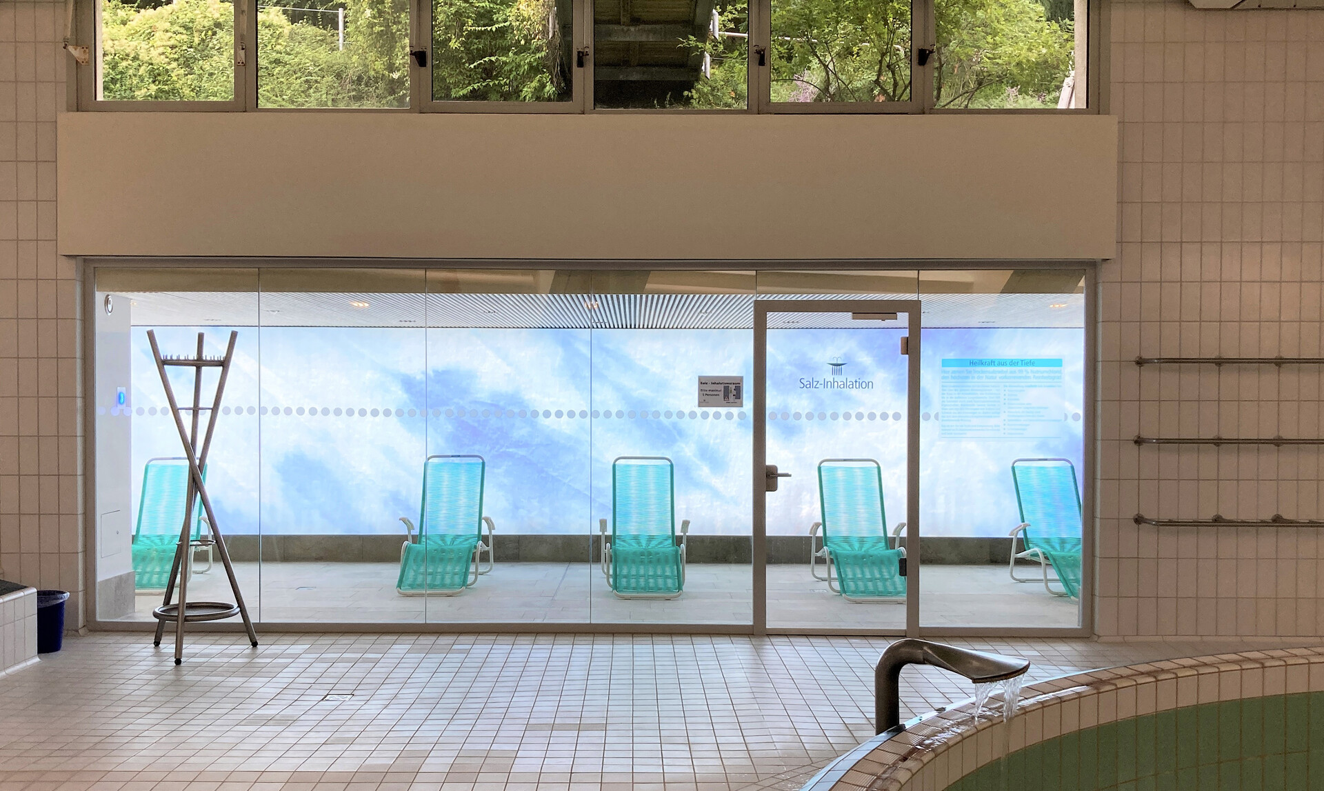 Im Solebad Cannstatt gibt es künftig mehr Raum für ruhige Momente – und alles dreht sich um das Thema „Sole“. Im Zuge der Sanierung des Solebades wurden neben Teile der Glasfassade die bestehenden Ruheräume renoviert und der ehemalige Solarium-Raum ebenfalls zum Ruheraum umgestaltet. Neue Oberfläche wie Holzlamellen an Wand und Decke, Fliesen in warmen Farbtönen, hinterleuchtete Salzstein- und Kunst-Elemente bringen Atmosphäre ins Solebad und sorgen für einen entspannten Aufenthalt.