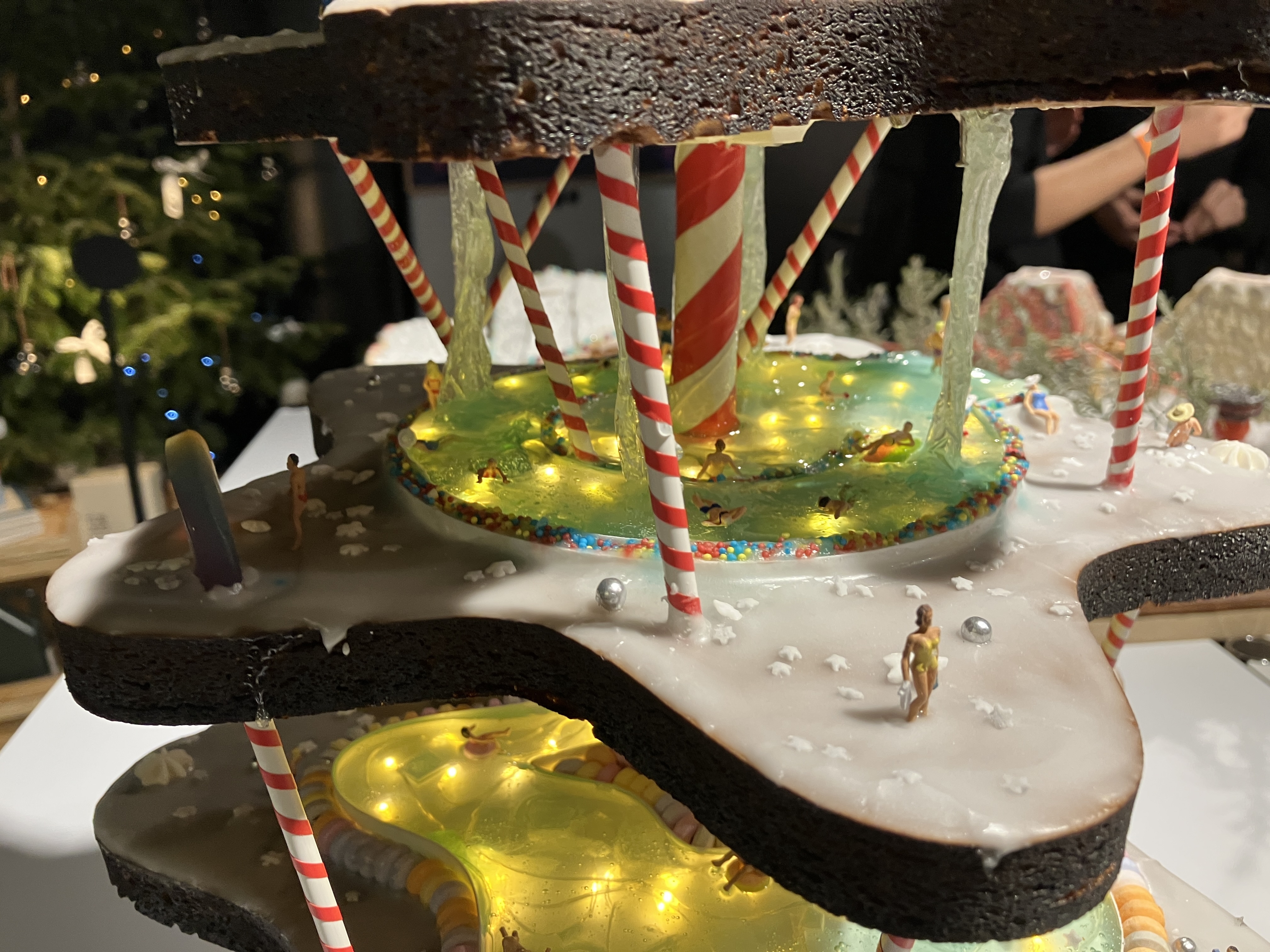 Unser süßes Meisterwerk mit Schwimmbecken, Wasserfällen, Lichtershow und kunterbunter Zuckerdeko wurde beim Lebkuchenhaus-Wettbewerb von smow & USM Modular Furniture spontan mit einer Special Mention ausgezeichnet. Der Entwurf von 4a überzeugte die Jury durch seine Originalität und die detaillierte Ausarbeitung.