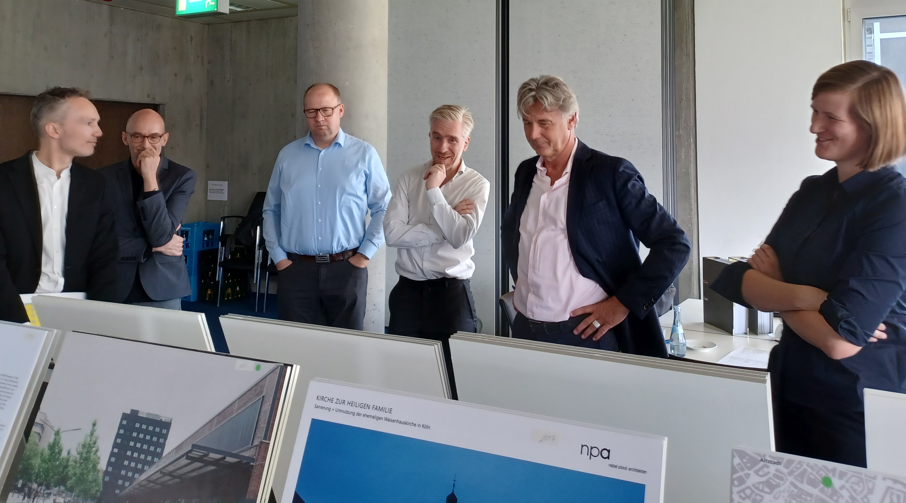 Die diesjährige Jury – bestehend aus Christian Schönwetter, Redaktion db-Metamorphose, Martin Höchst, Redaktion db, Georg Kolbe, Saint-Gobain Weber, Christian Duder aus dem Büro Werner Sobek, Matthias Burkhard von 4a Architekten und Lena Peters, freischaffende Architektin ([1] , von links) – beschäftigte sich eingehend mit den Arbeiten. Am Ende eines langen und intensiven Tages entschied sie sich für die Vergabe von zwei gleichberechtigten Preisen und sechs Anerkennungen.