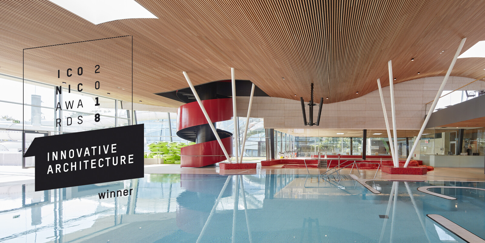 Das Offenburger Freizeitbad zählt in diesem Jahr zu den Gewinnern des ICONIC AWARDS: Innovative Architecture. Der internationale Architektur- und Designwettbewerb prämiert visionäre Gebäude mit dem Fokus auf der ganzheitlichen Inszenierung der Architektur und dem Zusammenspiel der einzelnen Gewerke. Ausgelobt wird der ICONIC AWARDS vom Rat für Formgebung, über die Vergabe entscheidet eine unabhängige Jury aus Vertretern der Bereiche Architektur, Innenarchitektur, Design und Markenkommunikation. Die Preisverleihung findet am 08. Oktober 2018 anlässlich der Messe Expo Real in der Pinakothek der Moderne in München statt.