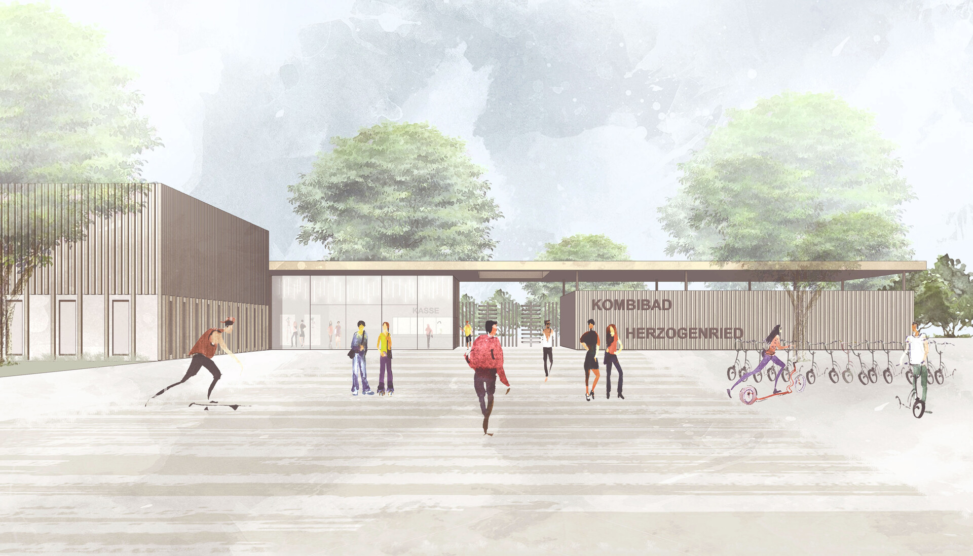 Nach einer Anerkennung für 4a Architekten beim Wettbewerb Kombibad Herzogenried in Mannheim Ende 2019 ging der Zuschlag für das Projekt an die Arbeitsgemeinschaft HASCHER JEHLE Architektur und 4a Architekten gemeinsam mit Weidinger Landschaftsarchitekten.