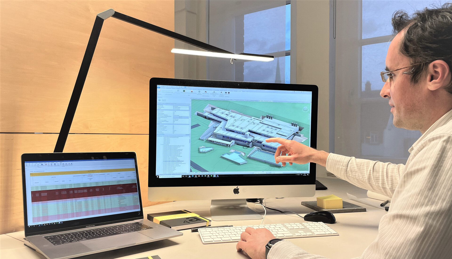Seit vielen Jahren treiben wir die digitale Planung in unserem Büro voran. 2016 haben wir Building Information Modeling (BIM) schrittweise in unsere Arbeitsweise integriert. Heute planen wir die meisten Projekte mit Autodesk Revit, um unsere Arbeitsprozesse im Rahmen der BIM-Methode zu optimieren. Für die Vernetzung der Projektbeteiligten werden digitale 3D-Modelle mit allen relevanten Planungs- und Bauwerksdaten versehen. Das vereinfacht die Zusammenarbeit und die Kommunikation in den Planungsteams und sorgt für eine reibungslose Projektabwicklung. Alle relevanten Daten stehen sämtlichen Teams zur Verfügung. So schaffen wir Transparenz im interdisziplinären Planungsprozess – und das bildet die Basis für unsere Qualitäts-, Kosten- und Planungssicherheit.