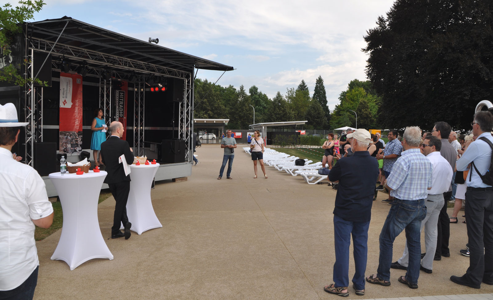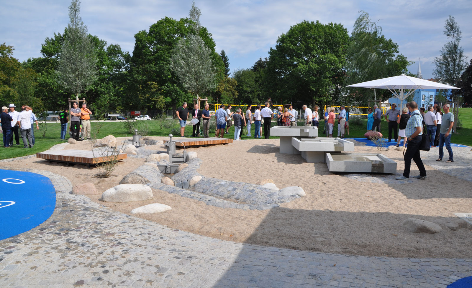 One year after the opening of the Stegermatt Aquatics Centre, the second construction phase at the centre in Offenburg was completed and opened by Mayoress Edith Schreiner. In future, even the youngest visitors will get their money’s worth in the outdoor area with its new children’s paddling pool and mud area. Other open-air leisure opportunities are provided by two beach volleyball courts as well as table tennis tables, with the extension of a locker building.