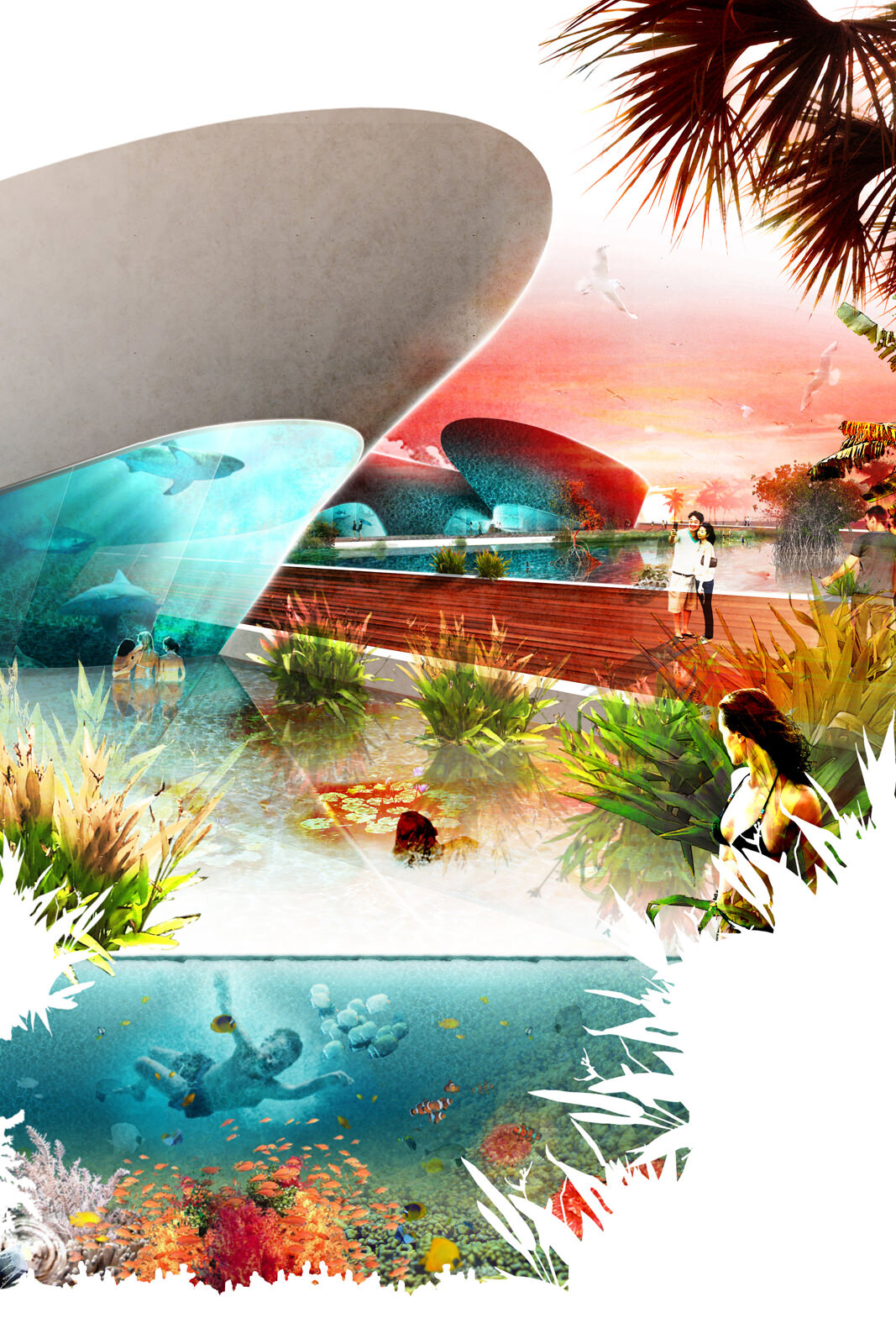 The master plan for the shoreline of a newly-built area in Vietnam’s popular tourist resort of Nha Trang includes the plan for a newly-built area. Beach and sports areas as well as wellness areas have been developed and a marina has been incorporated into the overall concept. The connecting axes between the newly-built area and the adjacent shoreline have been picked up on and the shoreline has been divided into the resulting sections. The architectural concept captures the local cultures, such as the myth of the water dragons, as well as landscape features. The terraced paddy fields and the interaction of the tides are reflected in the design of the paths and of the water, beach and island areas.
