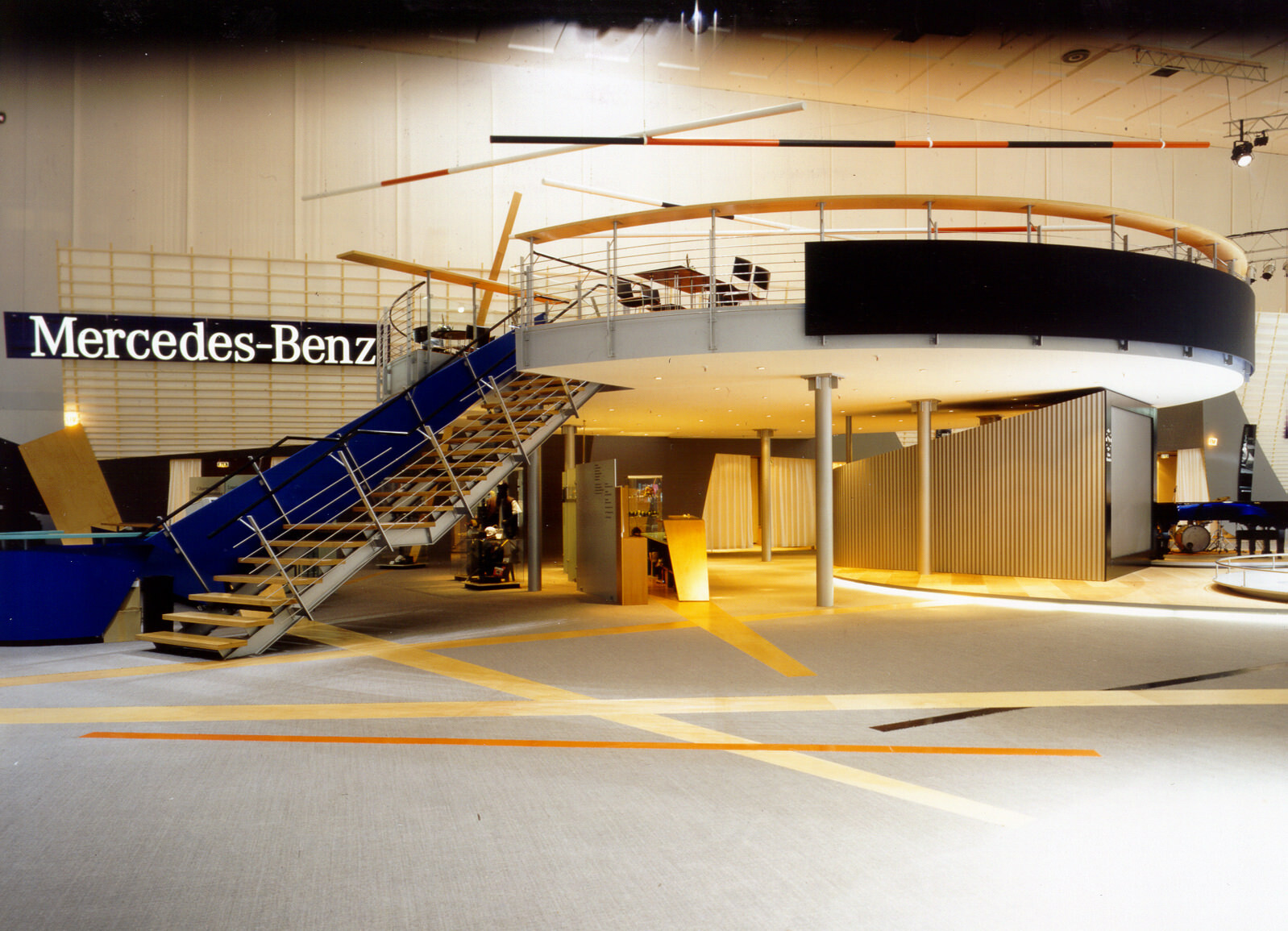 Architectural stylistic devices such as shelves, sails, suspended plates, cladding, etc. are employed in order to create worlds of experience. This results in integrated trade fair appearances conveying proximity and atmosphere. Products and any necessary information are never obtrusive, but are provided where the visitor expects and needs them.