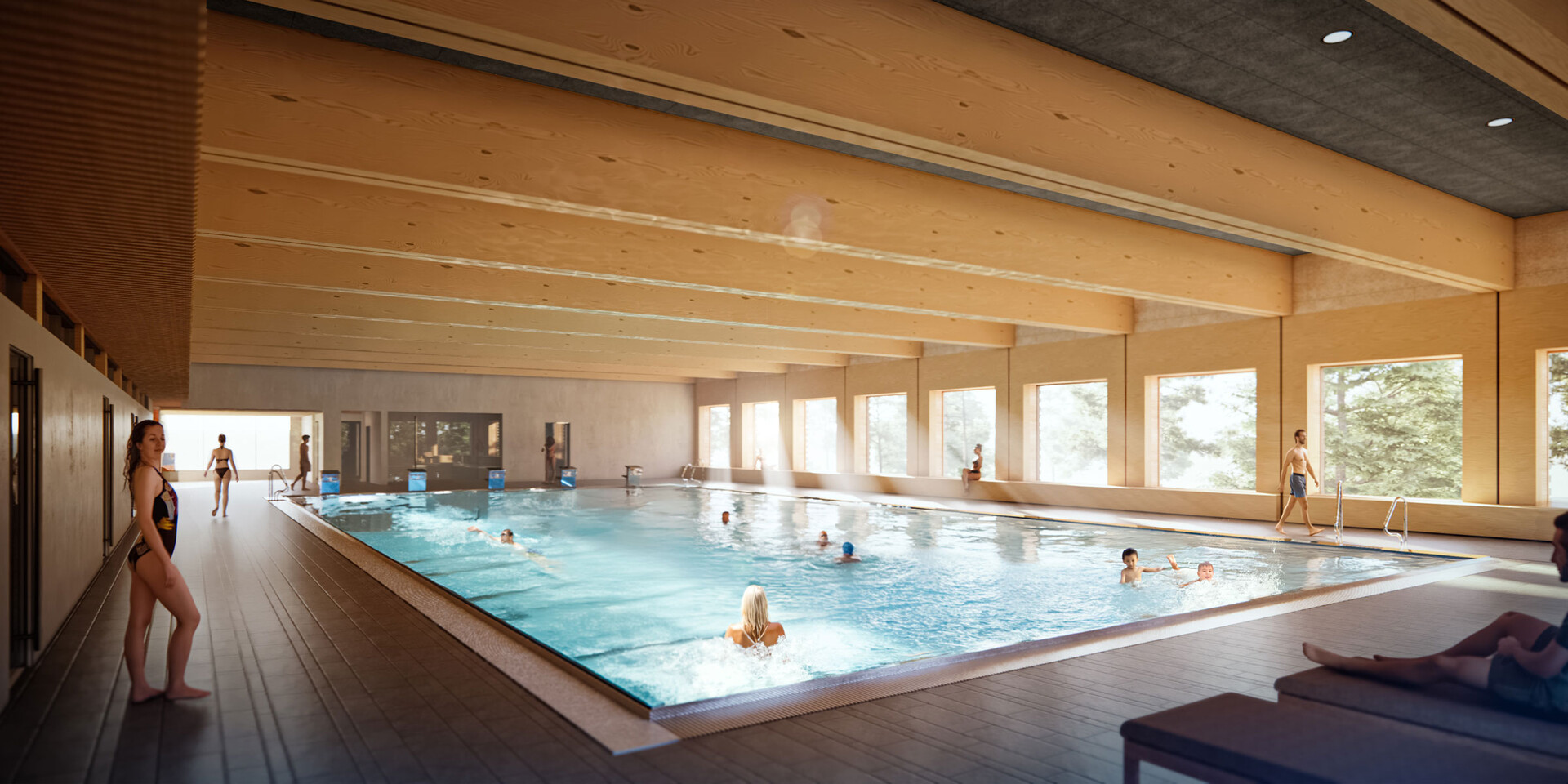 The pool, built using modular timber construction, is fitted with a 25-metre pool. The high-quality and sustainable construction method with a high degree of prefabrication enables short construction times and offers an alternative to traditional construction methods. The Zuffenhausen district of Stuttgart was chosen as the first location for the modular swimming pool. Completion is planned for mid-2026. A few years later, the modular pool will be built in Möhringen and finally in Untertürkheim.