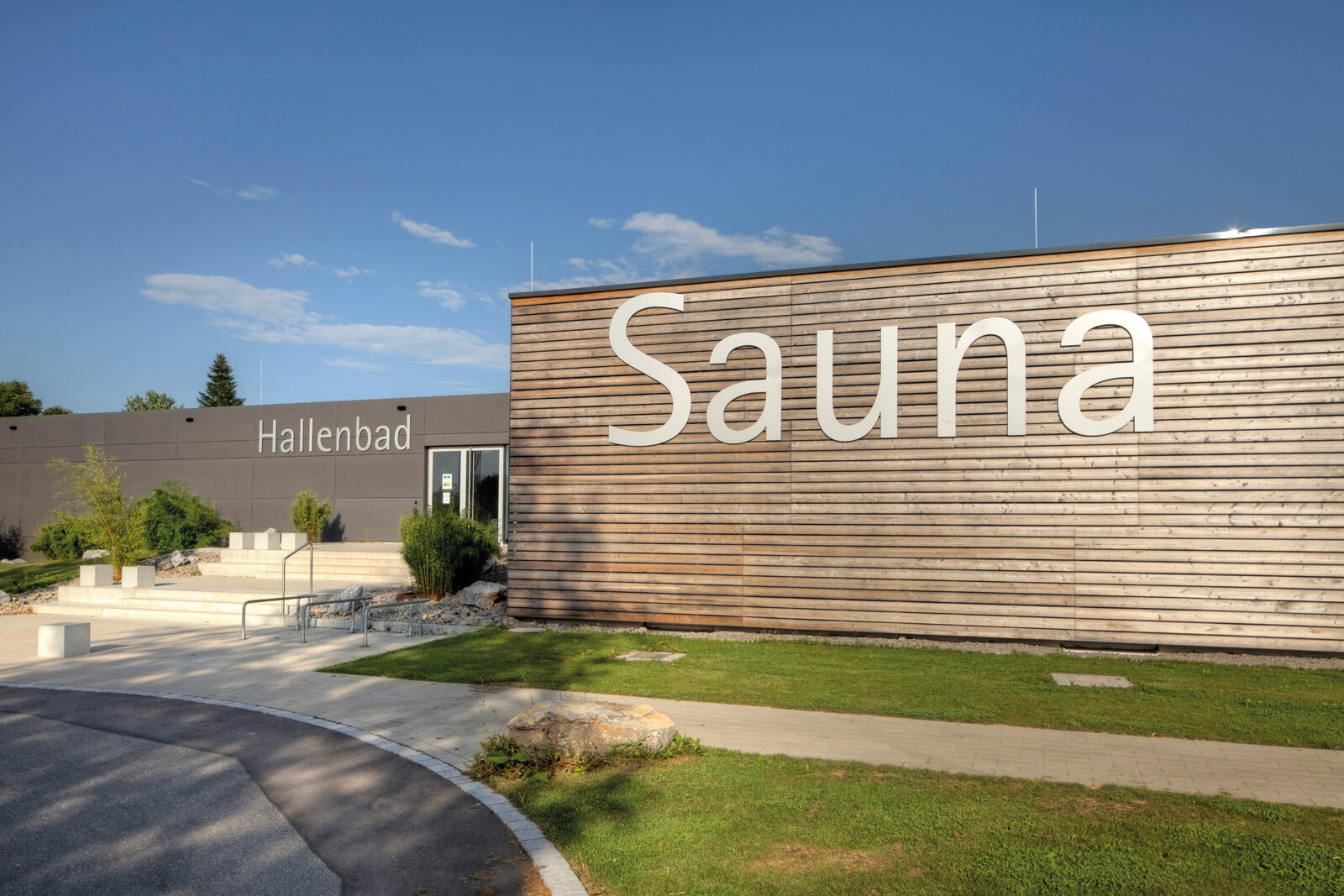 The original building fabric from the 1970s was left largely intact during the redevelopment of the indoor pool and sports hall in Mengen. The existing building was stripped back to its shell and formal interventions were carried out only in the sauna area. The redesign of the building envelope and interior with attractive materials, a new colour scheme and minor structural alterations gives the baths a noticeably more appealing welcoming quality. Greater value was also placed on the maximum use of daylight – extensive façade glazing and interior glass partitions provides great transparency and creates visual axes which interconnect the individual functional areas.