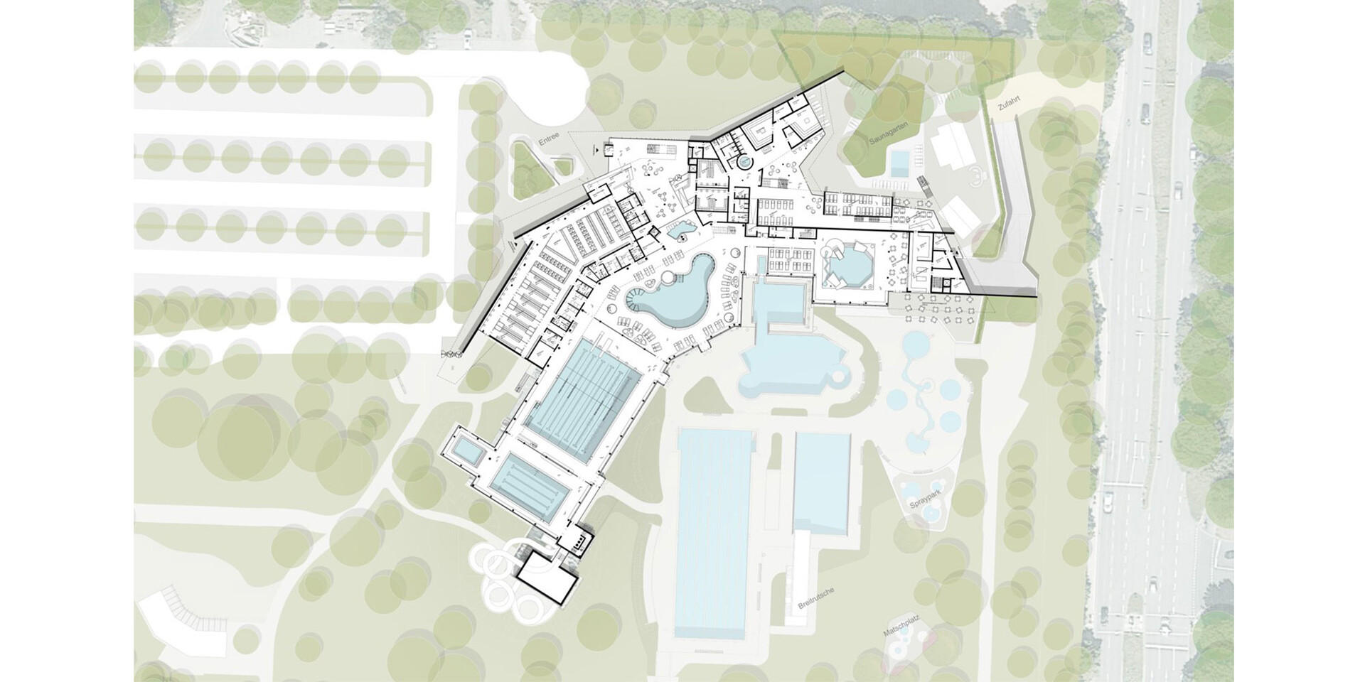 The Königsbad in Forchheim needs to be refurbished due to structural damage. The existing indoor swimming pool, which was built in 2010, needs to be almost completely refurbished and fitted with new floor coverings and suspended ceilings. Measures to make the swimming pool more attractive are also included in the renovation work. The entrance area with foyer, changing rooms, children's pool, the administration rooms on the upper floor and the entire sauna area will be redesigned. Existing structures will be retained as far as possible, reorganised structurally and made more attractive, and new areas will also be added. The gastronomy area will be expanded and a sauna rest house for more relaxation areas and a new outdoor sauna are planned. The sauna garden is also included in the redesign concept and will be extended to around 1,000 square metres.
