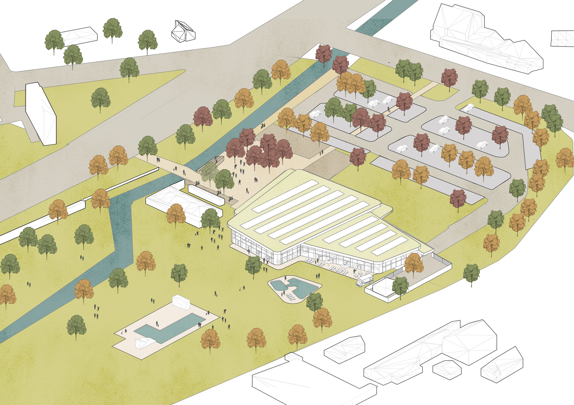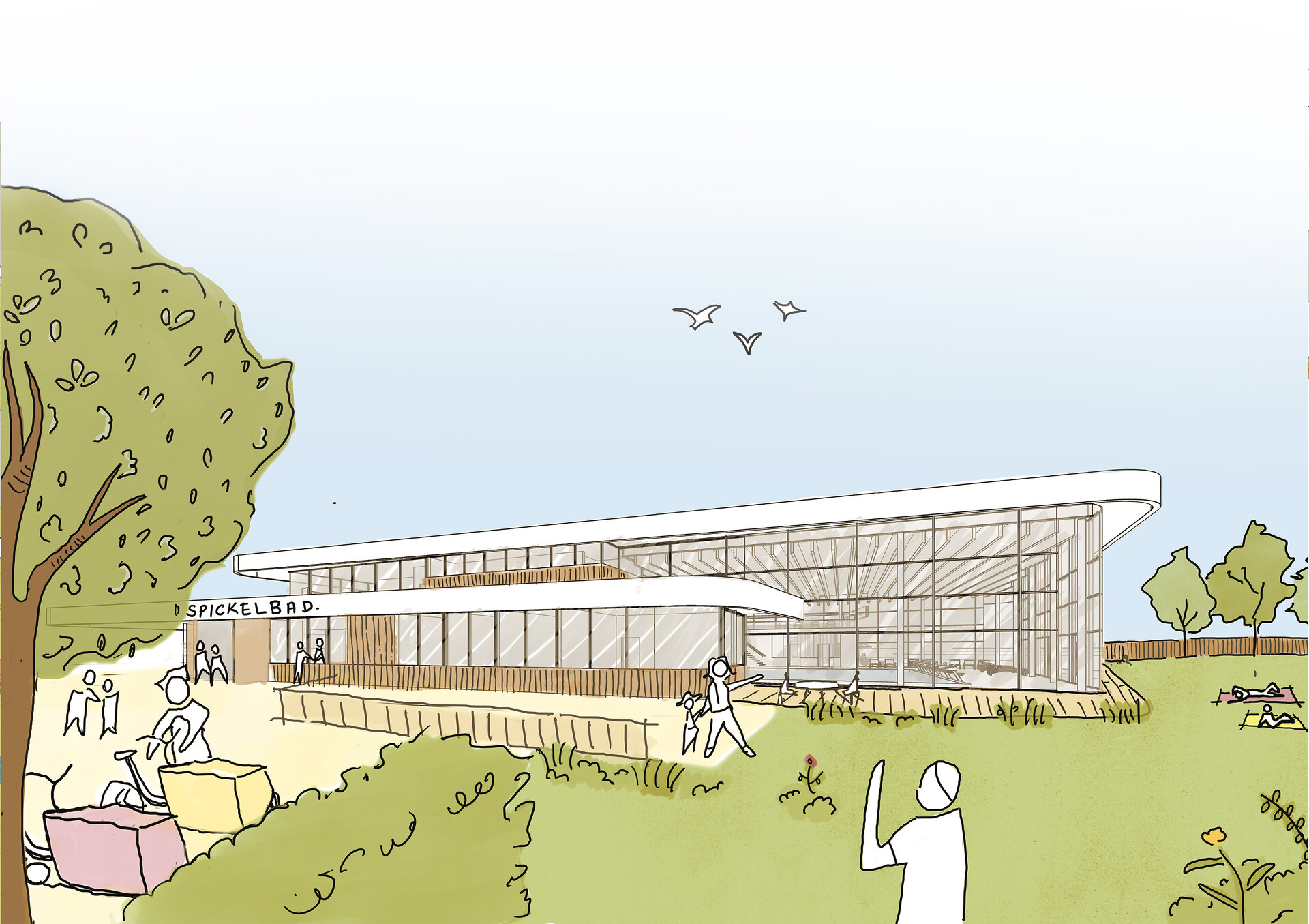 Für den Neubau des Spickelbades in Augsburg wurde ein Generalplaner-Wettbewerb ausgelobt. Zehn renommierte Planungsbüros haben Entwürfe eingereicht, von denen fünf wurden prämiert wurden. Der 3. Preis ging an 4a Architekten, die den Wettbewerb im Team mit Planstatt Senner, Überlingen, schlaich bergermann partner, Stuttgart und IGP Ingenieurgesellschaft, Pforzheim, ausgearbeitet haben.