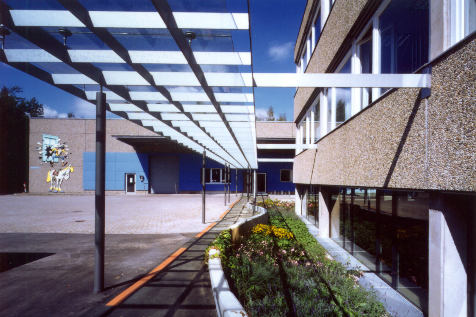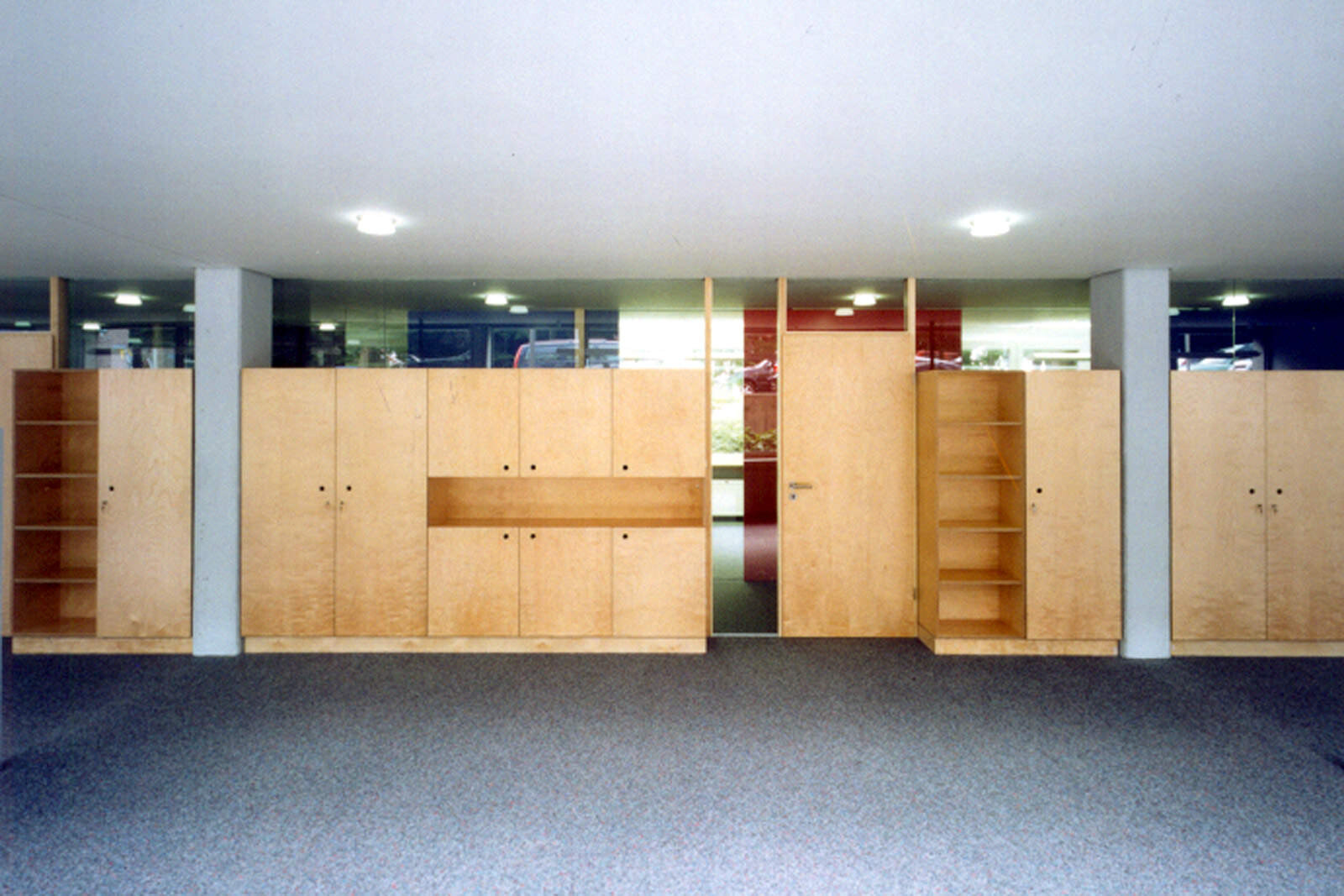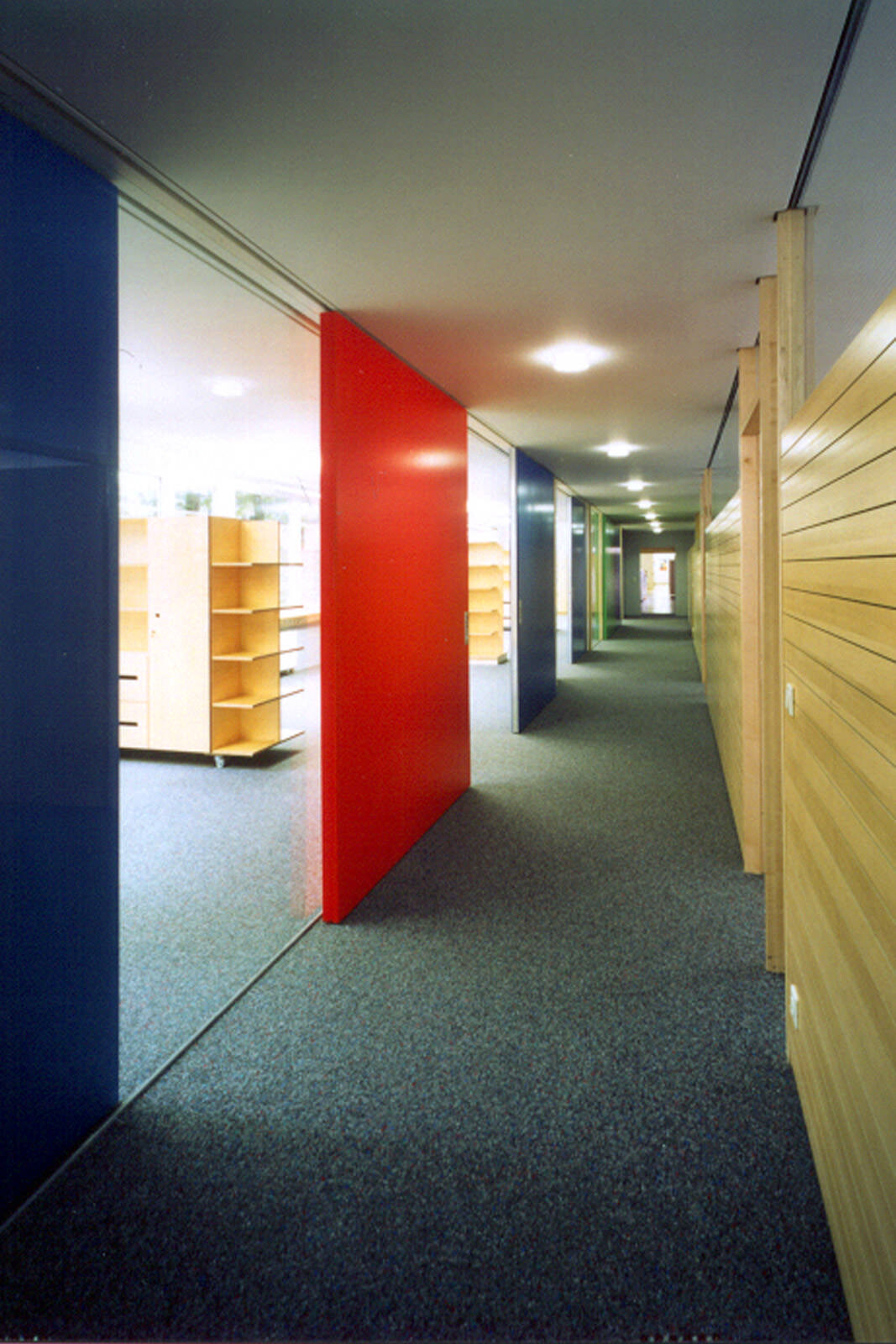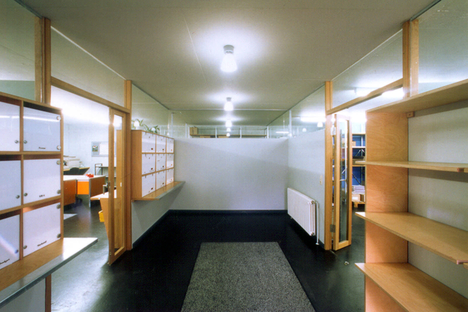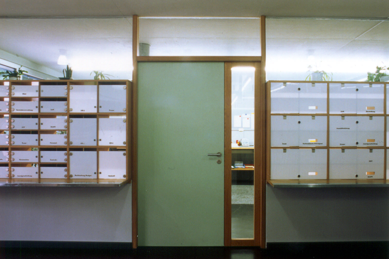 In einem Verwaltungsgebäude aus den 60er Jahren wurde der Raum zunehmend knapp. Ziel des Umbaus war es, zusätzliche Büroflächen zu schaffen und durch die Innenraumgestaltung ein attraktives Arbeitsumfeld zu erzeugen. In einem vorhandenen Lagerraum wurde eine neue Poststelle als "Raum im Raum" eingebaut. Im Untergeschoss entstanden neue Büroräume. Den Übergang zum benachbarten Bürogebäude schützt eine neue, gedeckte Pergola. Durch die Material- und Farbgestaltung mit hellem Holz, Glas, farbigen Trennwänden und einer großzügigen Verglasung der Außenwände wurden die ursprünglichen Lagerräume in eine lichtdurchflutete und kommunikative Arbeitswelt verwandelt.