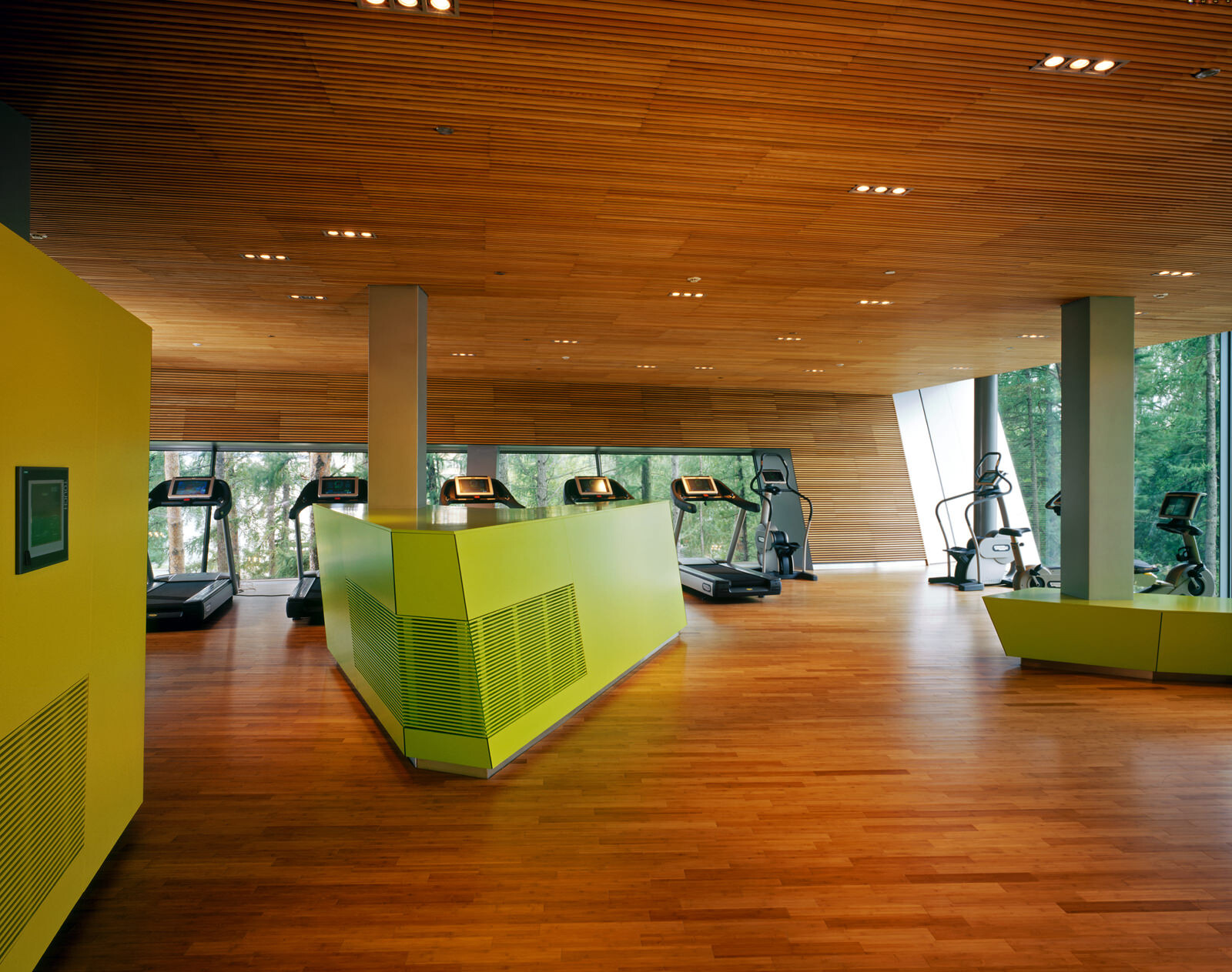 Der Spa- und Wellnessbereich ist der am hochwertigsten gestaltete Bereich im ELSE-Club. Zentrum ist ein wie ein Stein geformter Ruheraum. Er steht inmitten eines dekorativen Wasserbeckens. Seine Außenwand ist mit Blattgold belegt. Über Trittsteine, die im Wasser liegen, gelangt man von separaten kleinen Umkleiden, nach Geschlechtern getrennt, in diesen Ruheraum. Nach einer kleinen Ruhepause wird man zur Wellnessbehandlung im Ruheraum abgeholt und wieder über Trittsteine im Wasser in die Behandlungsräume geleitet. Diese sind außen mit hochwertigen italienischen Furnieren und mit kuhfellbezogenen Paneelen verkleidet. In diese Wandverkleidung sind Glasvitrinen eingearbeitet, die ausgesuchte Objekte präsentieren. Die Behandlungsräume selbst sind zur Außenseite komplett verglast. Nach Betreten des Raumes schließen sich die geschosshohen, grünen Lamellen langsam und erzeugen eine introvertierte Stimmung. Die Saunalandschaft gliedert sich in drei Bereiche: die gemischte Sauna als nicht textilfreier Bereich und zwei nach Geschlechtern getrennte textilfreie Saunen. Jeder Saunabereich hat im Zentrum einen geformten "Stein" mit einem Warmsprudelbecken und einem Kalttauchbecken. Drumherum gruppieren sich verschiedene Saunen, Dampfbäder, Kaltwasser- und Erlebnisduschen. Boden und "Stein" sind mit brasilianischem Granit belegt. Die Wände sind teils mit geneigten, teils mit geschwungenen, hochwertig furnierten Holzpaneelen verkleidet. In diese Vertäfelungen sind hinterleuchtete Glasnischen eingearbeitet. Die Beleuchtung ist fast ausschließlich indirekt, so dass der unbekleidete Gast sich nie wie auf einer Bühne präsentiert fühlt. Die Zone entlang der Fassade wird, durch einen hölzernen Schiffsparkett-Boden betont, als Ruhebereich genutzt.