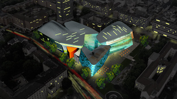 Das Grundstück für das Casino befindet sich im Zentrum von Duisburg. Der Entwurf fügt sich wie ein vierblättriges Kleeblatt in die Stadtstruktur von Duisburg ein. Die Form ist Ausdruck des besonderen Inhalts und unterstreicht die Bedeutung für Duisburg. Durch die "Kleeblätter" wird die große Gebäudemasse gegliedert, die einzelnen Funktionsbereiche sind außen ablesbar. Das Hotel setzt zur Landfermannstraße mit einer Höhe von rund 30 Metern einen städtebaulichen Akzent. Der König-Heinrich-Platz bleibt als parkartige Grünanlage erhalten.