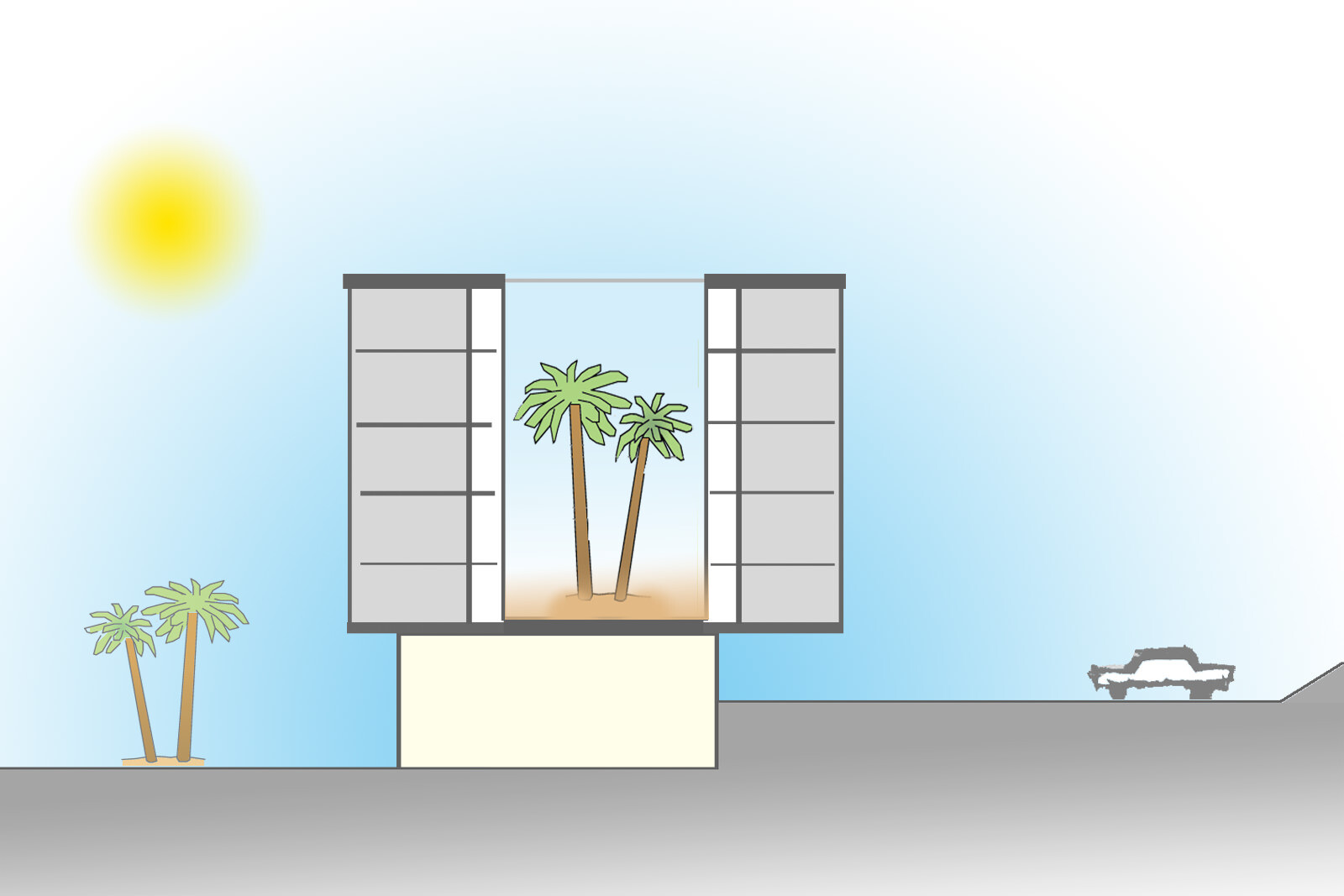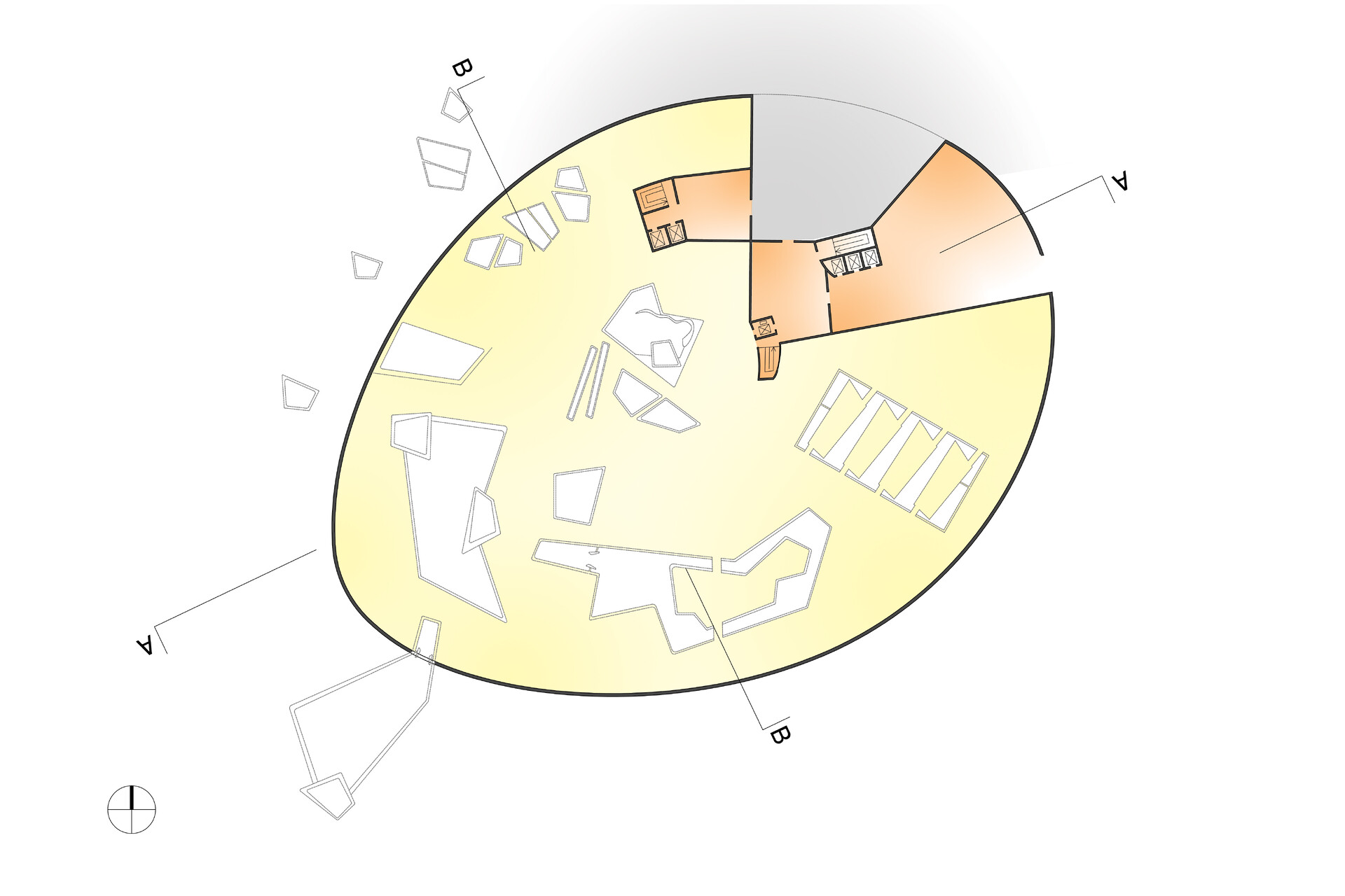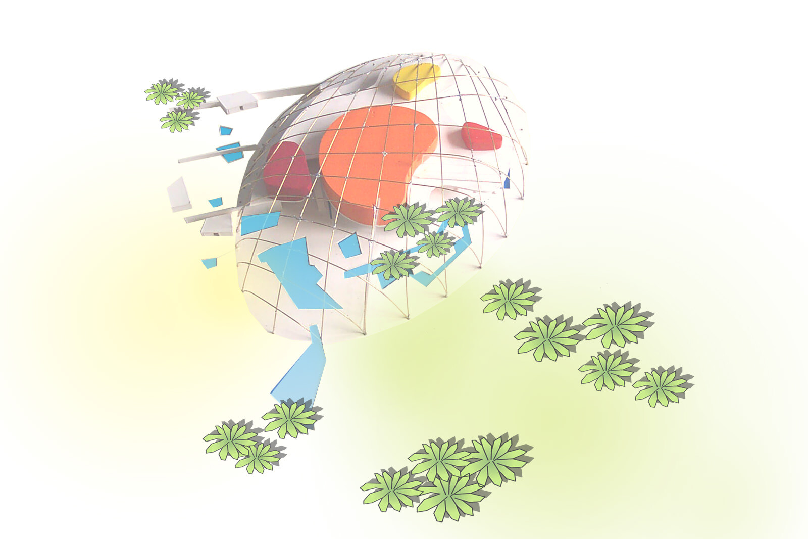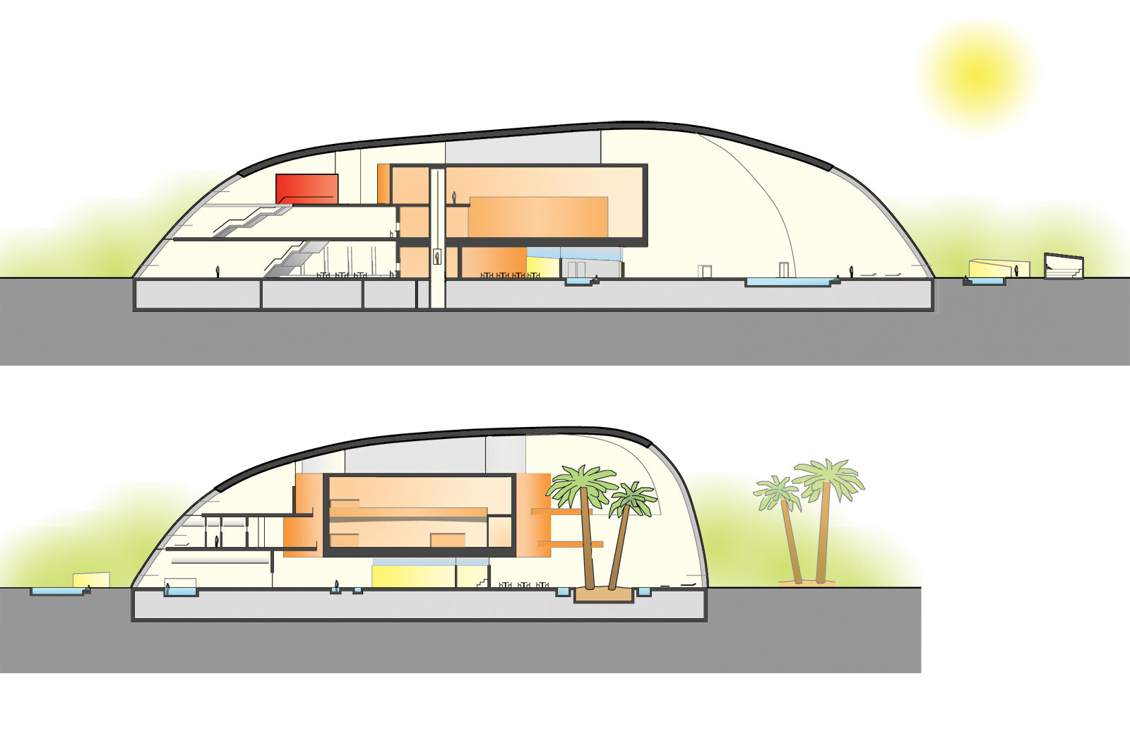 Die große, muschelförmige Hülle beinhaltet die drei Hauptbereiche des Shineville Resorts: Badelandschaft, Kongresszentrum und Tropischer Garten. Die Badelandschaft bietet auf über 6000 m² Thermal- und Meerwasserbecken, Sauna- und SPA-Bereiche sowie Restaurant. Kongress- und Thermalbadbereiche sind zum tropischen Garten hin orientiert. Der Hotelbereich ist der Thermalbad-"Muschel" angegliedert.