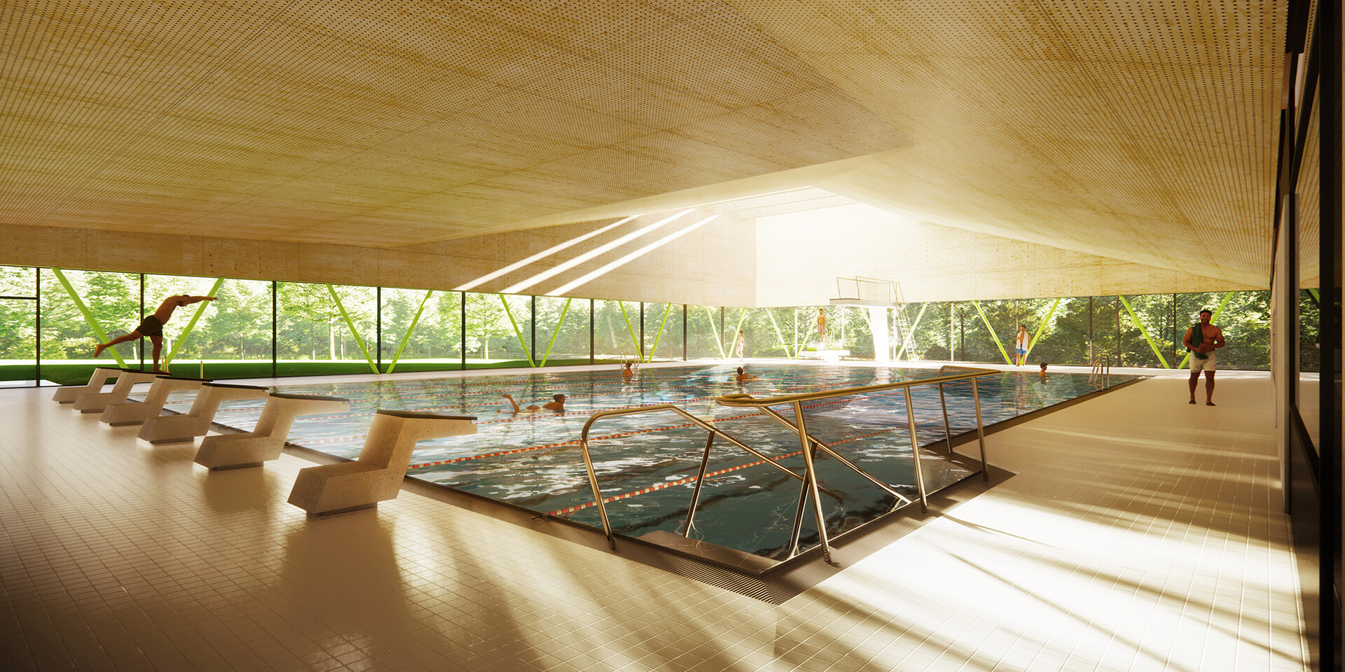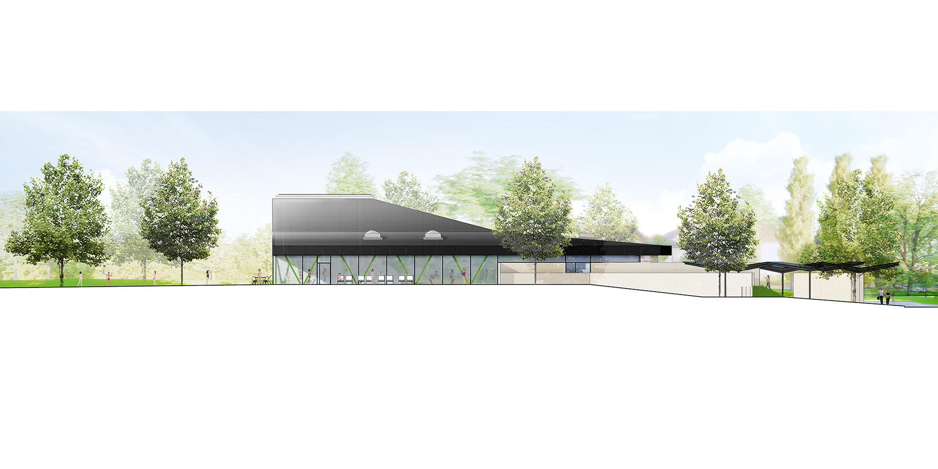 Das neue Hallenbad ersetzt das in die Jahre gekommenen Opptimare-Bad. Der Neubau wird ein Schwimmerbecken mit sechs 25 Meter-Bahnen und einem Drei- und einem Ein-Meter-Sprungbrett sowie ein Lehrschwimmbecken und einen Kleinkindbereich umfassen. Im Fokus der Planung steht, ein funktionales Gebäude zu errichten, das einen zeitgemäßen Badebetrieb ermöglicht und in punkto Wirtschaftlichkeit überzeugt.