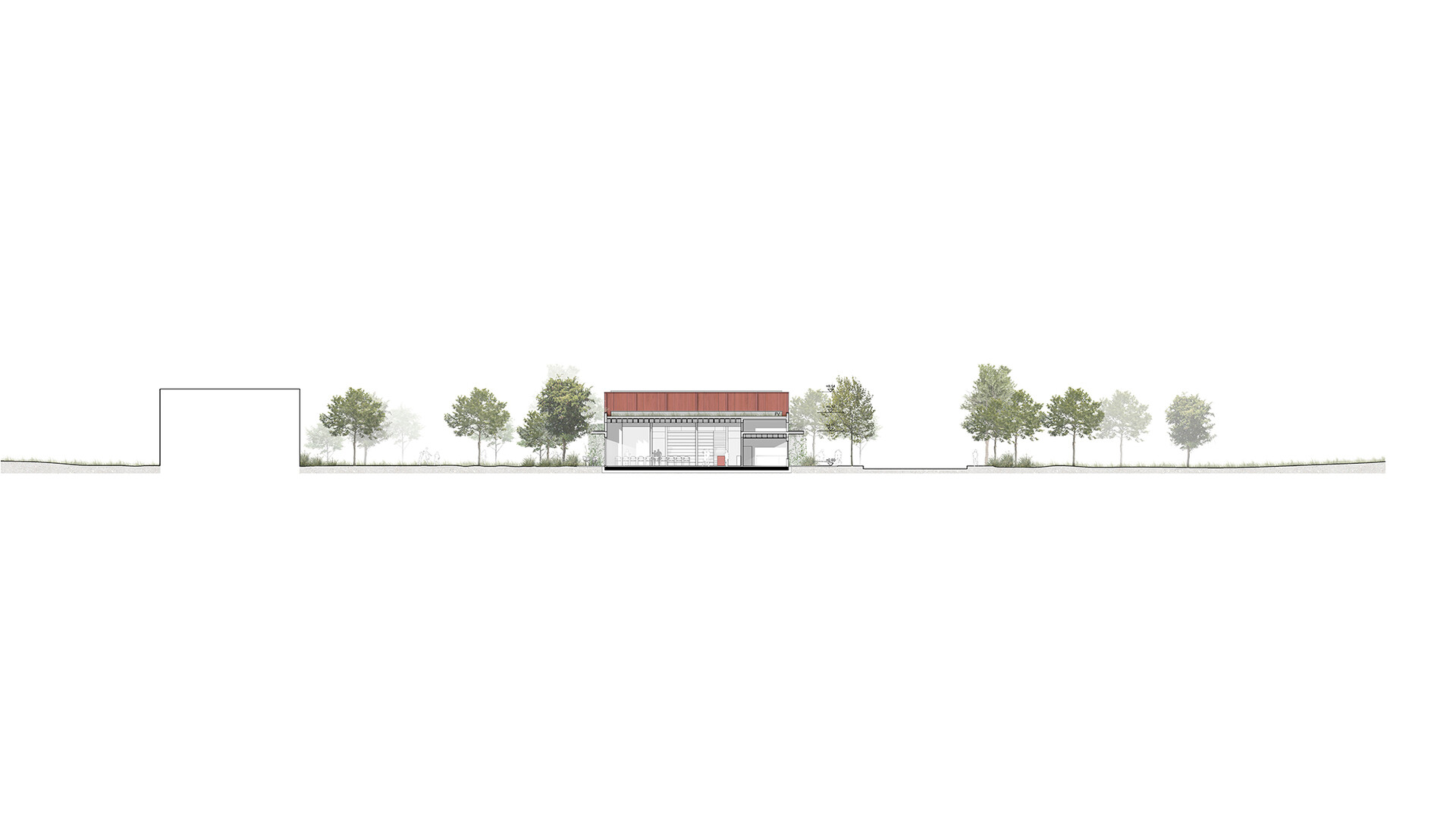 Das Jugendzentrum gliedert sich architektonisch und funktional in drei Bereiche. Ein zentrales Foyer, einen Veranstaltungsbereich und die Funktionsräume. Das Foyer ist ein großzügig gestalteter, lichtdurchfluteter Raum, der vom Haupteingang bis zum Garten reicht und als zentrale Erschließungs- und Kommunikationszone dient. Hier gibt es Bereiche zum Verweilen und für Aktivitäten mit Blick ins Grüne. Der Veranstaltungsbereich schließt im Süden an das Foyer an. Dieser flexibel gestaltbare Gebäudeabschnitt umfasst einen Saal, ein Café, eine Küche sowie Nebenräume. Verschiebbare Trennwände ermöglichen eine Nutzung als eigenständige Bereiche oder als Einheit für größere Veranstaltungen. Überdachte Terrassen und ein Zugang zum Garten erweitern den Raum ins Freie. Die Funktionsräume bilden den dritten Bereich. Hier befinden sich verschiedene spezialisierte Räume wie Fahrrad-, Holz- und Töpferwerkstätten im Erdgeschoss sowie Musik- und Multifunktionsräume im Obergeschoss. Über Fluchtbalkone im Obergeschoss besteht im Sommer zusätzlicher Aufenthaltsraum im Freien.