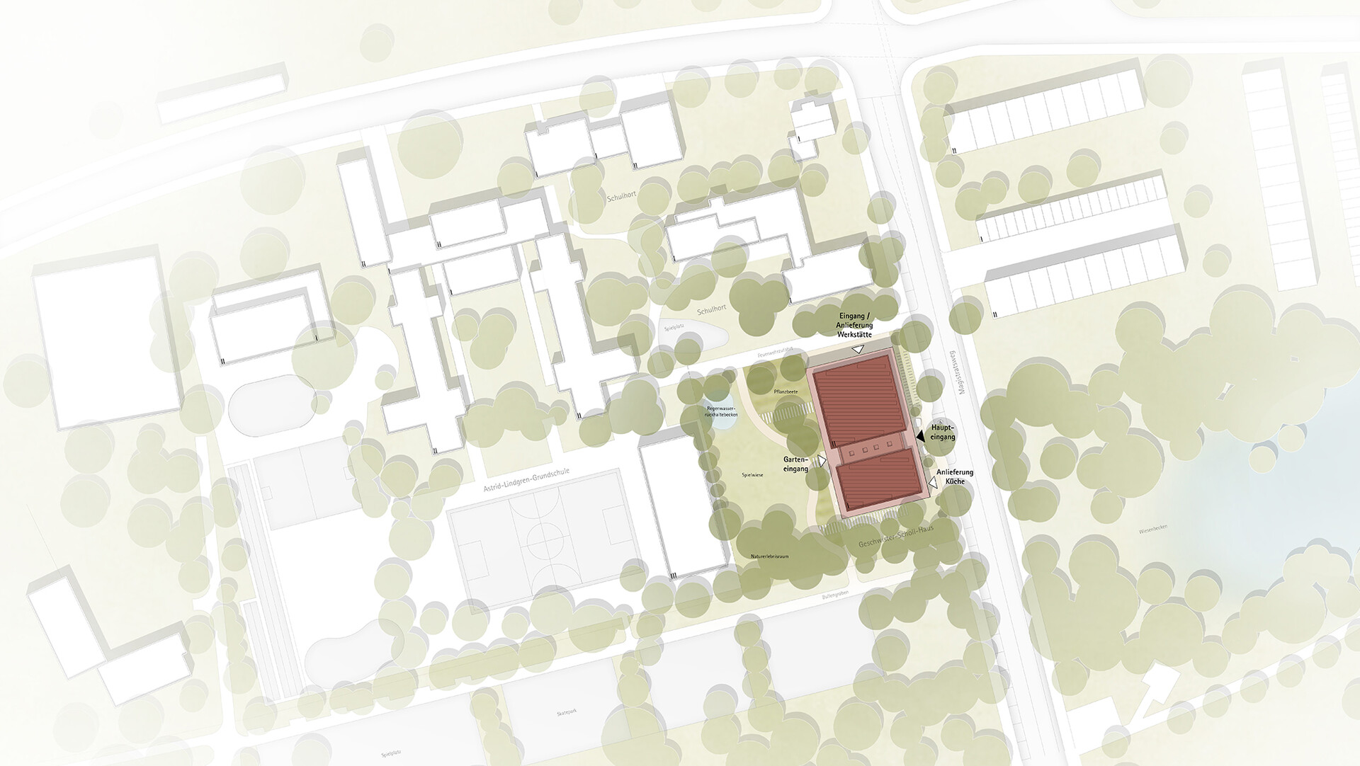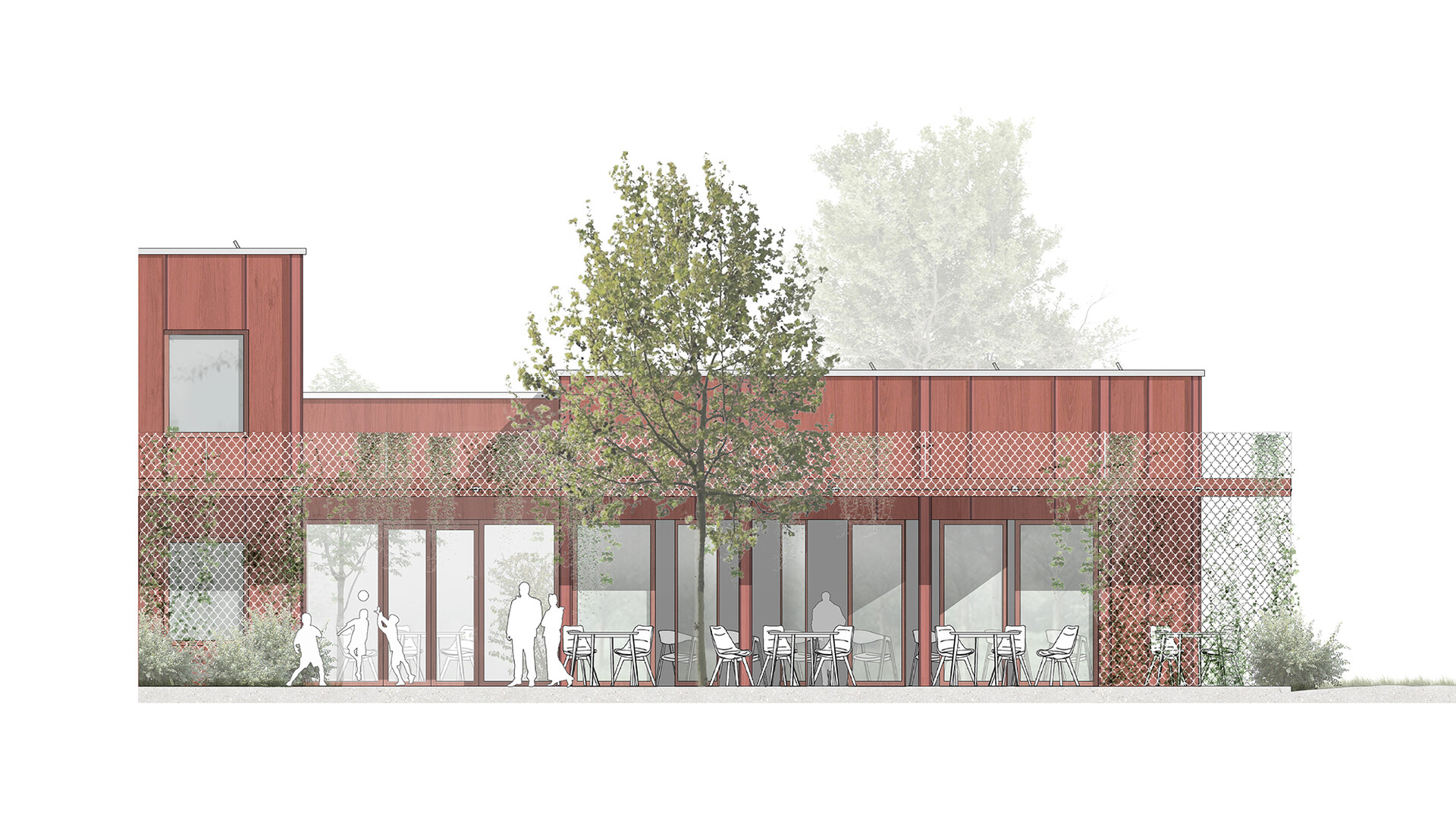 Die Arbeitsgemeinschaft hat sich bei der Planung bewusst für einen Neubau entschieden. Dadurch können die funktionalen Anforderungen optimal erfüllt und gleichzeitig ein nachhaltiges sowie gestalterisch hochwertiges Gebäude realisiert werden. Das Jugendzentrum ist als offenes Haus für Kinder, Jugendliche und alle Besucher konzipiert und empfängt diese mit einer einladenden Atmosphäre.