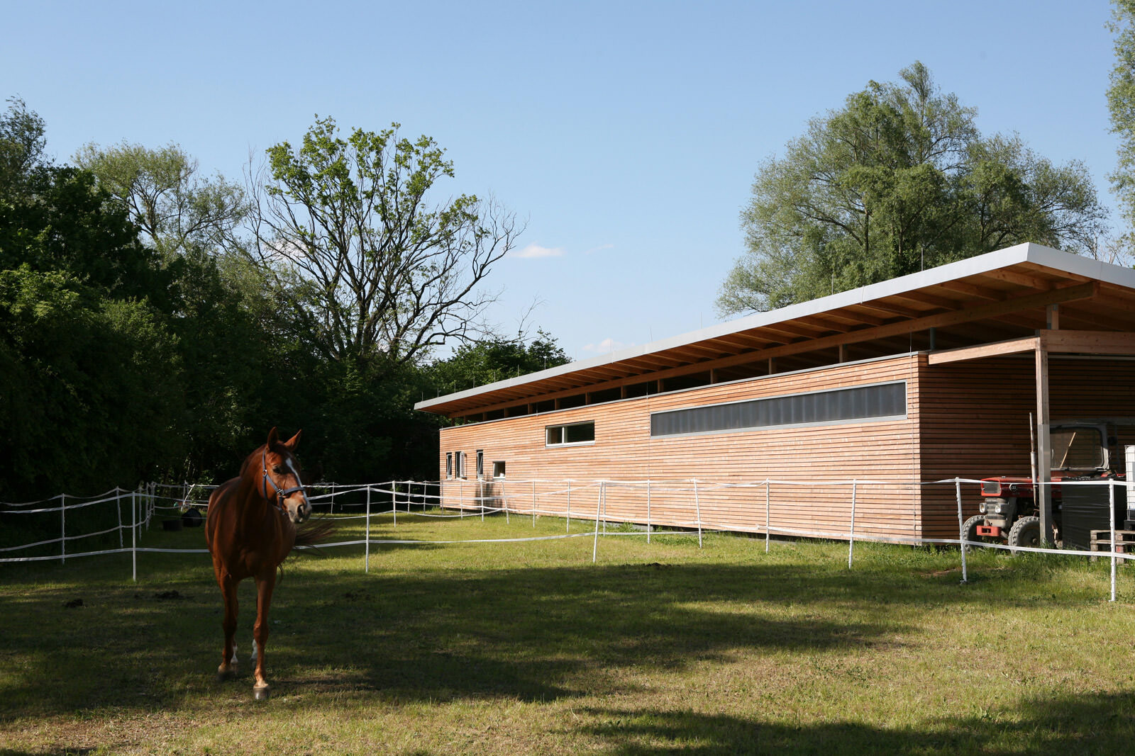 Der Umbau und die Erweiterung der Pferdeklinik an der Rennbahn Iffezheim erfolgte in sechs Bauabschnitten. Die ehemalige Futterscheune wurde zum Operationstrakt umgebaut. Durch den Einbau von Pferdeboxen in die alte Reithalle konnten die Stallungen erweitert werden; ein Neubau beherbergt eine Bewegungshalle mit Futterlager. Im alten Operationstrakt befindet sich seit der Umgestaltung der Eingangs- und Wartebereich für die Besucher der Pferdeklinik. Das ehemalige Wohnhaus beherbergt seit dem Umbau eine Kleintierpraxis mit Szintigrafiebereich.