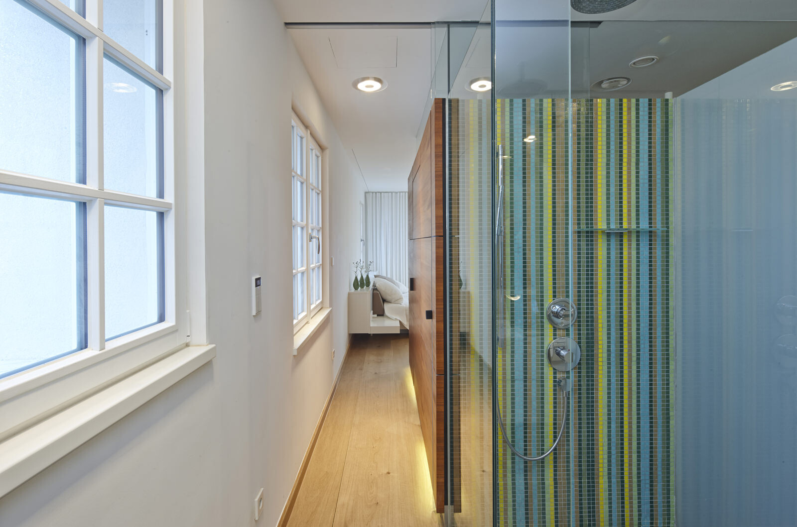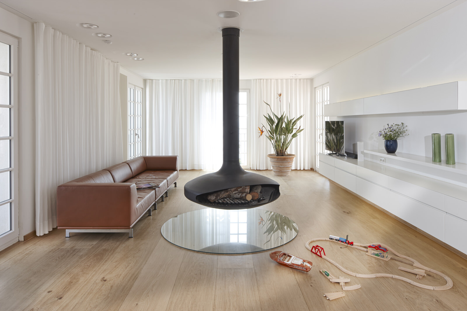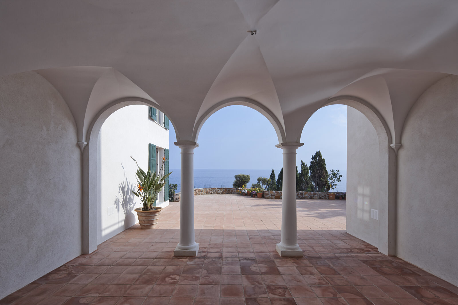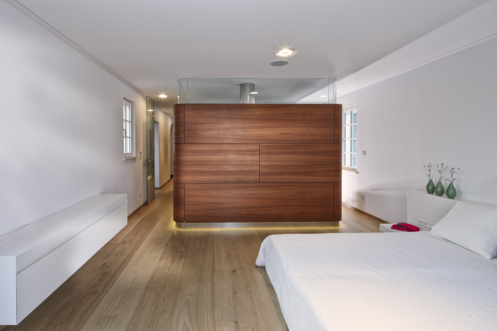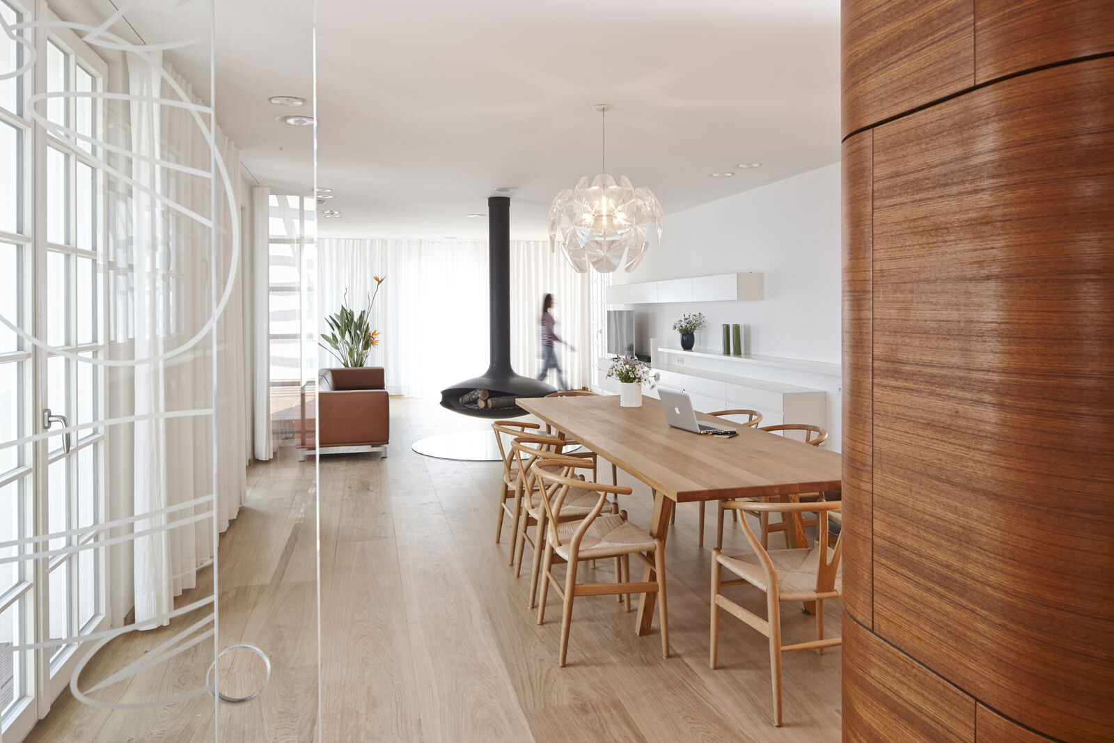 Das Gebäude aus dem Jahr 1926 beeindruckt nicht nur durch seine herrliche Lage an der französischen Riviera, sondern ist auch im Hinblick auf seine Historie etwas Besonderes. Die Villa Le Trident ist die erste von zahlreichen Villen, die der amerikanische Architekt Barry Dierks an der Mittelmeerküste gebaut und auch selbst bewohnt hat. Im Vordergrund der Sanierung stand, dieses architektonische Erbe zu wahren und dem Gebäude zugleich ein modernes Ambiente zu verleihen. Von außen besticht die Villa von Barry Dierks nach wie vor mit ihrer „weißen Architektur“. Weiträumig, lichtdurchflutet und von schlichter Eleganz ist der vorherrschende Raumeindruck seit der Umgestaltung. Für einen fließenden Übergang der unterschiedlichen Bereiche wurden bestehende Innenwände im Erd- und Obergeschoss entfernt. Lange Fensterfronten, weiße Möbel, weiß lasierte Eichenmassivholzdielen und Glaselemente verleihen den Räumen eine helle und ruhige Atmosphäre. Markante Akzente in diesem reduziert gestalteten Ambiente setzen einzelne Elemente wie Möbel, ein von der Decke abgehängter Kamin sowie das von den Architekten gestaltete Wandelement in der Bibliothek. Blickfang auf beiden Ebenen sind die mit Teakholz verkleideten, frei stehenden Kuben. Sie erinnern in ihrer Materialität an einen Schiffsrumpf und stellen so einen lokalen Bezug her.