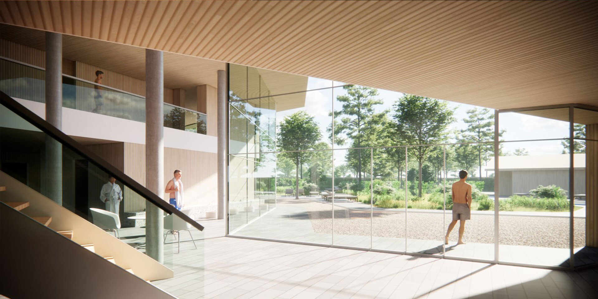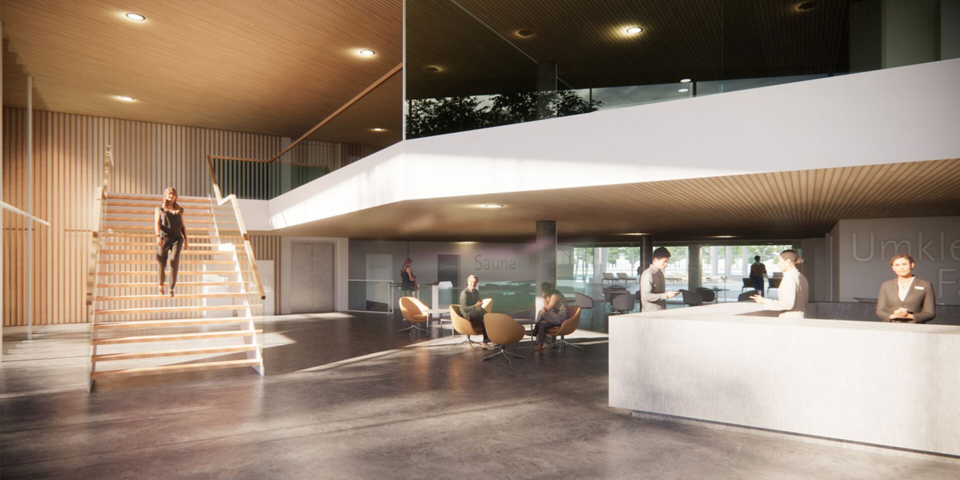 Im Sinne einer nachhaltigen Bauweise stehen eine zeitlose Formensprache, Materialwahl und Farbgebung im Vordergrund der Neugestaltung. Natürliche und hochwertige Materialien mit angenehmer Haptik und Optik kommen zum Einsatz. Sie steigern zum Einen die Aufenthaltsqualität für die Badegäste und und sorgen zum Anderen durch zeitlose Gestaltung und Haltbarkeit für eine lange Lebensdauer. Im Fokus der Neuorganisation lag ebenso, die Betriebsabläufe zu optimieren, die Bade- und Saunalandschaft barrierefrei zu gestalten und nicht zuletzt ein eigenständigen Betrieb der Gastronomie zu ermöglichen.