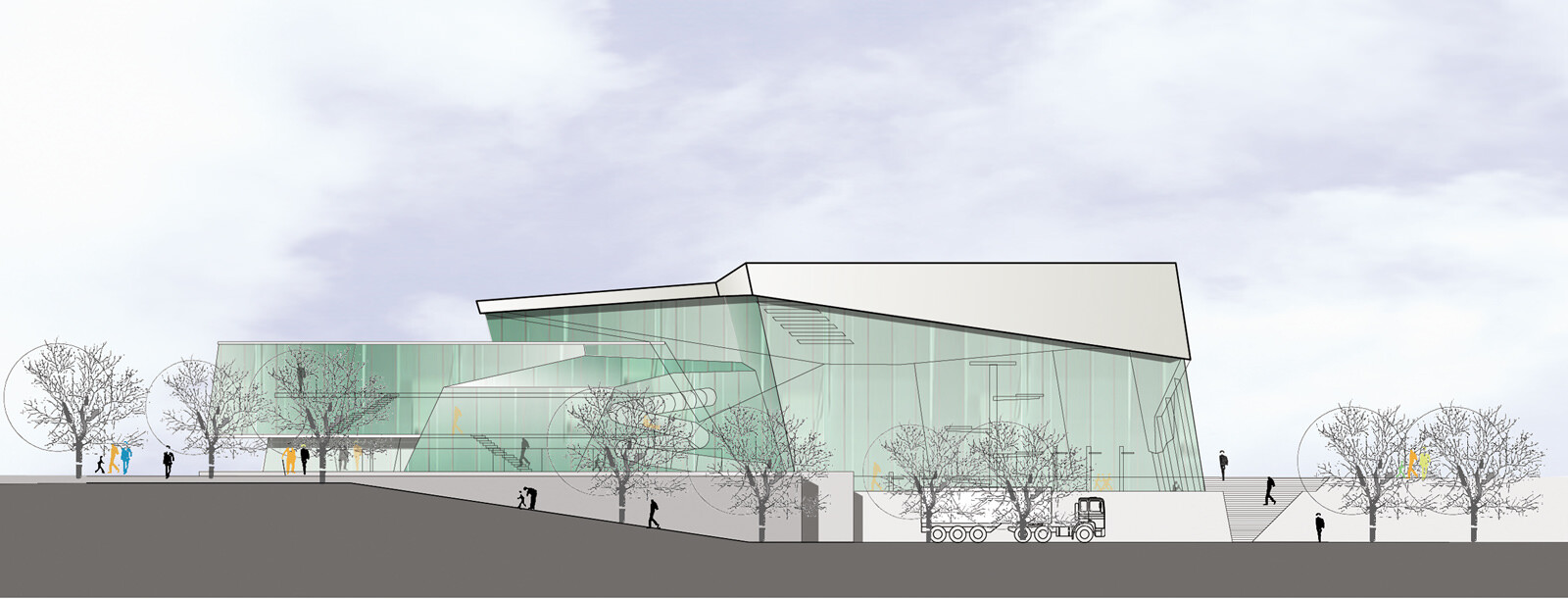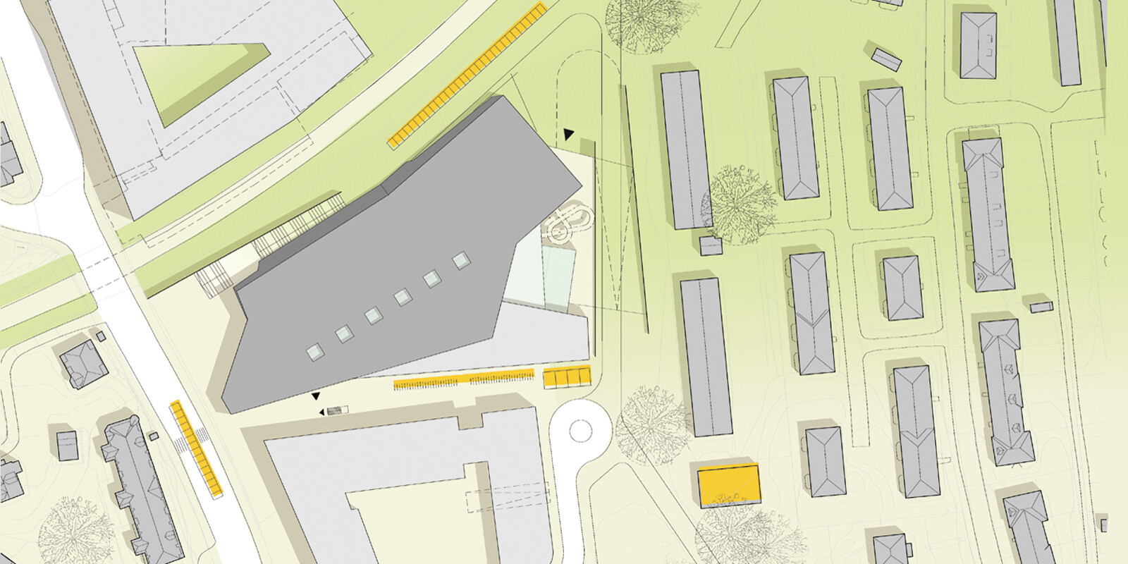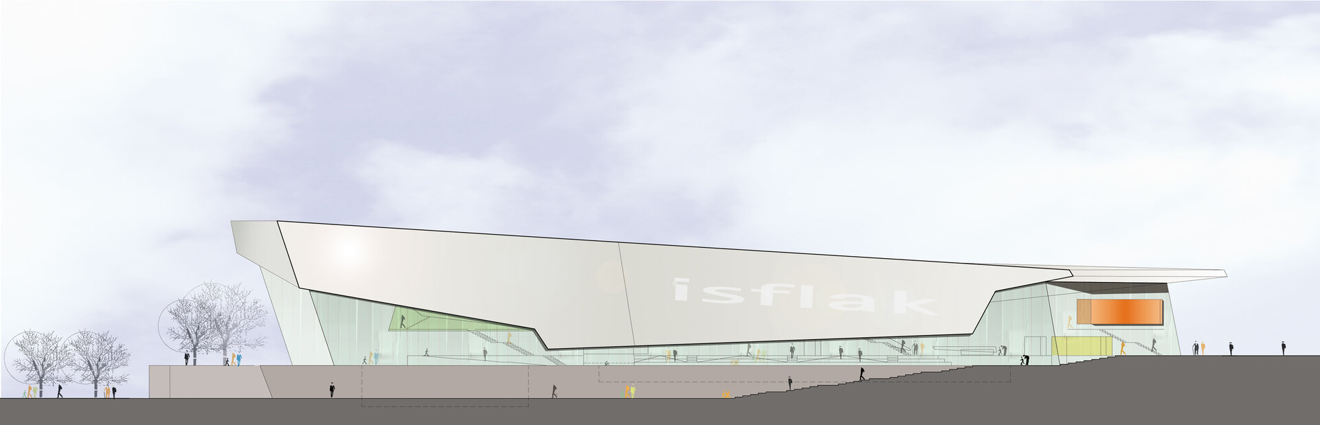 Durch ihre extravagante Form bildet die Hauptanlage für Schwimmen und Turmspringen im Süden von Bergen ein sichtbares architektonisches Zeichen und verdeutlicht somit ihre Bedeutung als nationales Trainings- und internationales Wettkampfzentrum. Form und Materialwahl spiegeln die Dynamik und Präzision des Schwimmens und Turmspringens wider. Das Gebäude ist eine scharf geschnittene, großteils einsehbare Skulptur, die durch ihre Offenheit die Besucher freundlich einlädt.