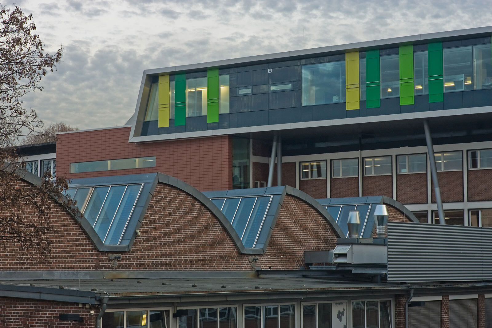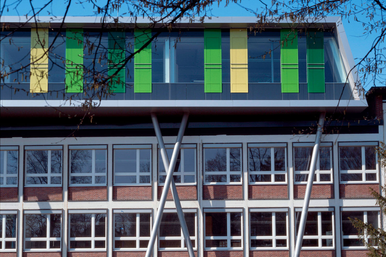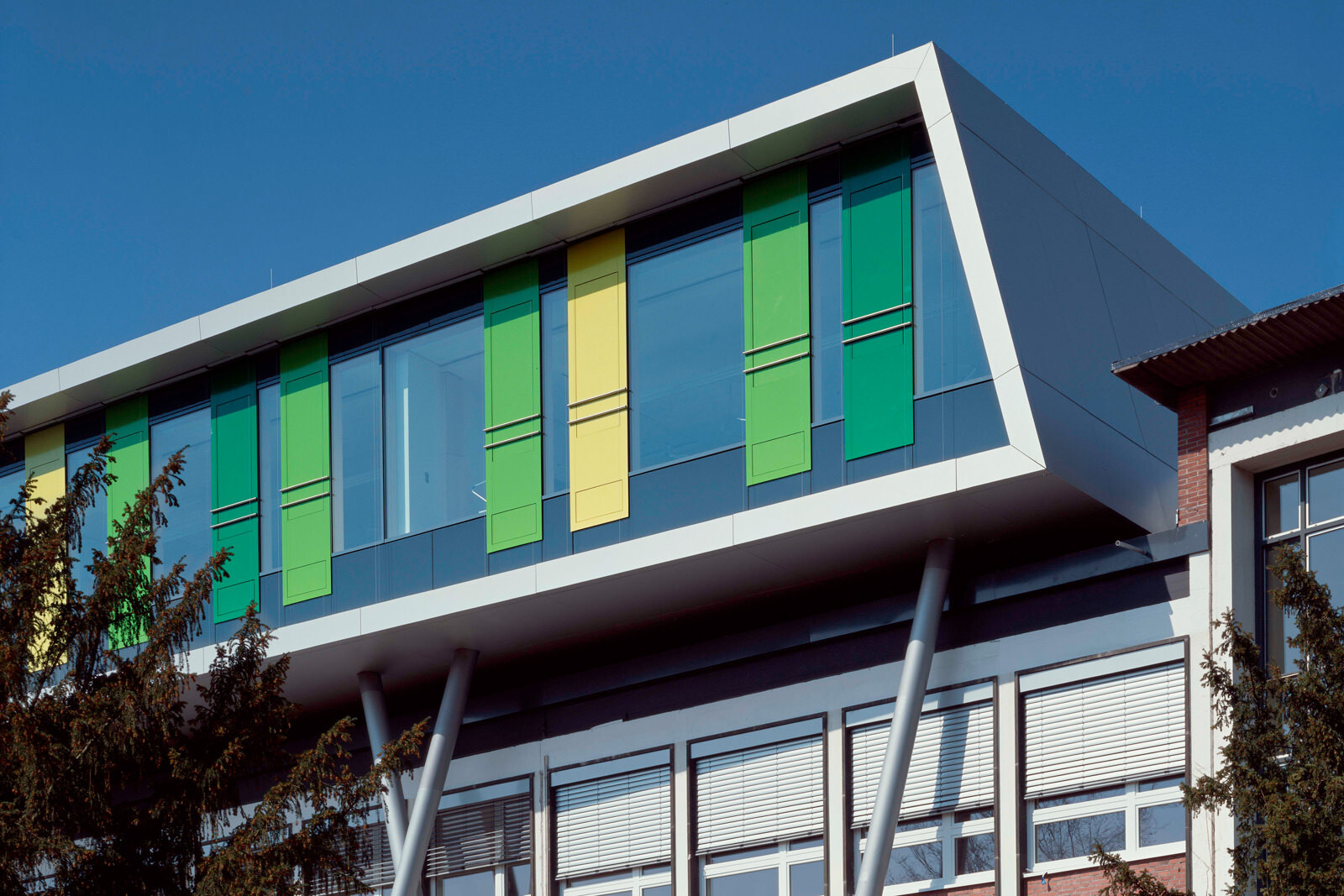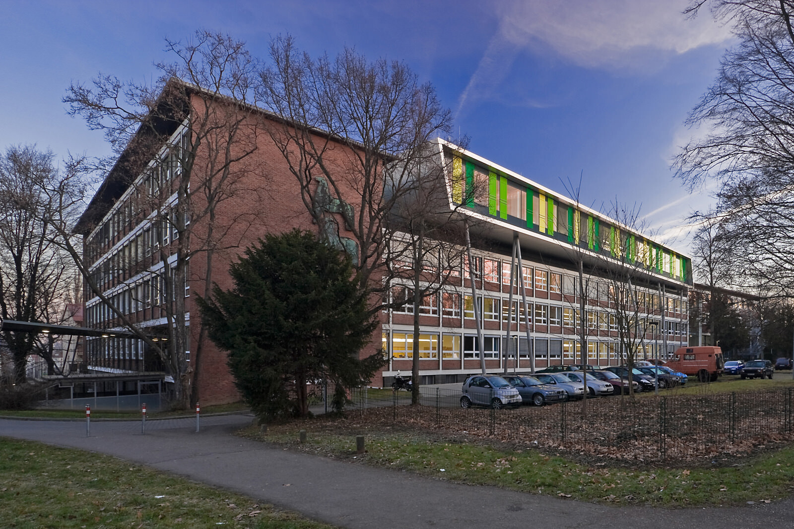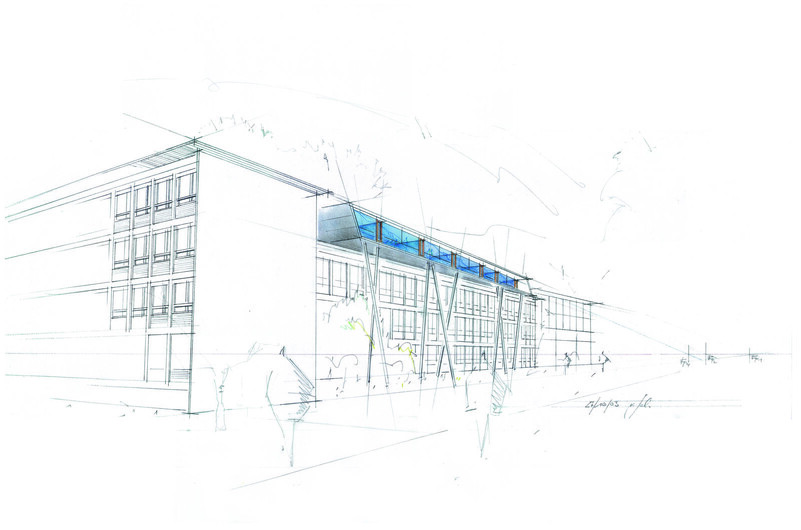 Als Leitmotiv für die Erweiterung des Schulgebäudes aus den 50er Jahren diente das Bild einer Karosserie. Damit steht die Architektur des Gebäudes in direktem Zusammenhang mit dem Namensgeber der Schule, dem Automobilkonstrukteur Wilhelm Maybach sowie den Berufsfeldern Metalltechnik, Automobil- und Kraftfahrzeugmechanik, die hier unterrichtet werden. Die Aufstockung ist aus wirtschaftlichen Gründen als Zweibundanlage konzipiert mit einem eigenen Tragwerk, welches über das bestehende Schulgebäude gestülpt wurde. Eine Besonderheit der völlig losgelösten Konstruktion: Sie kann ohne umfangreiche Arbeiten am Bestand wieder abgetragen werden. Das ist im Hinblick auf die demographische Entwicklung der Schülerzahlen sowie unter nachhaltigen Gesichtspunkten eine interessante Lösung.