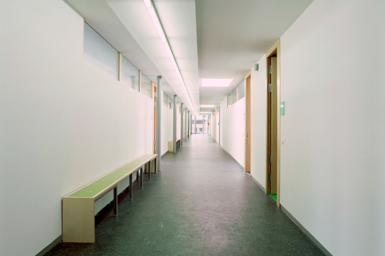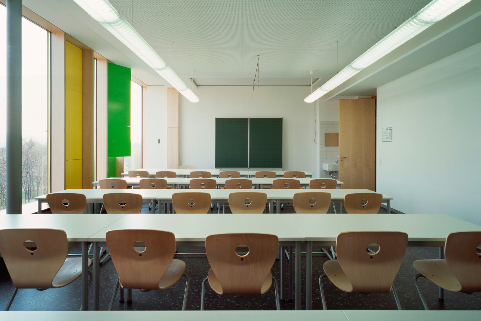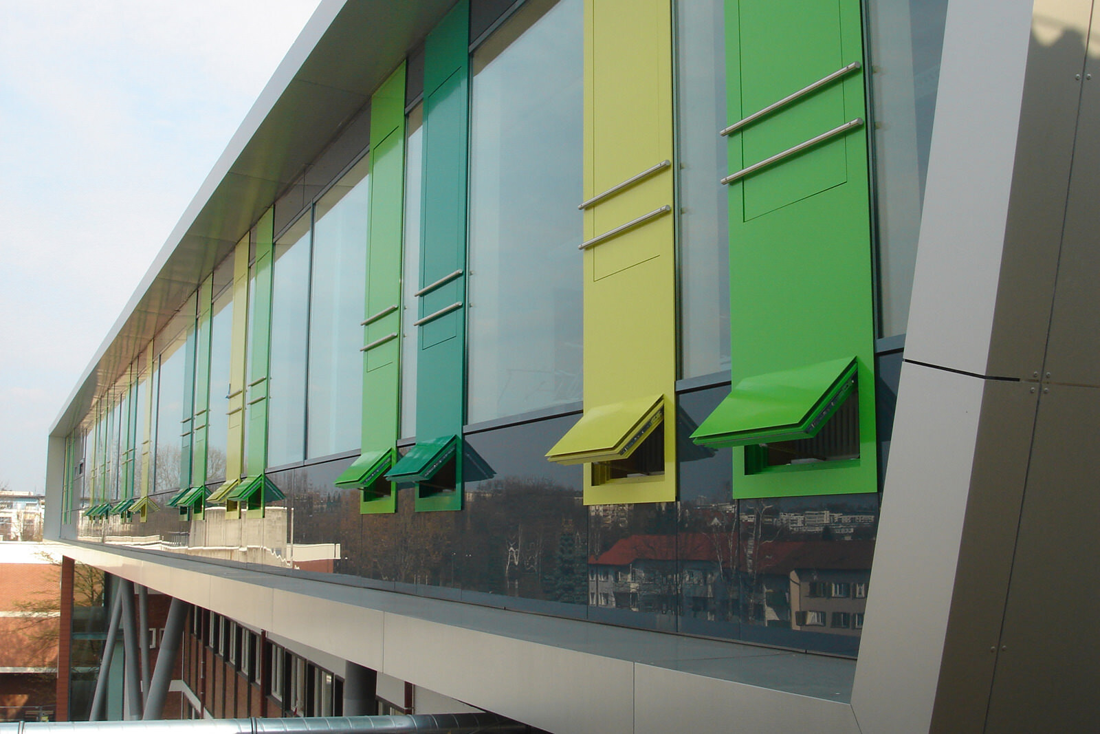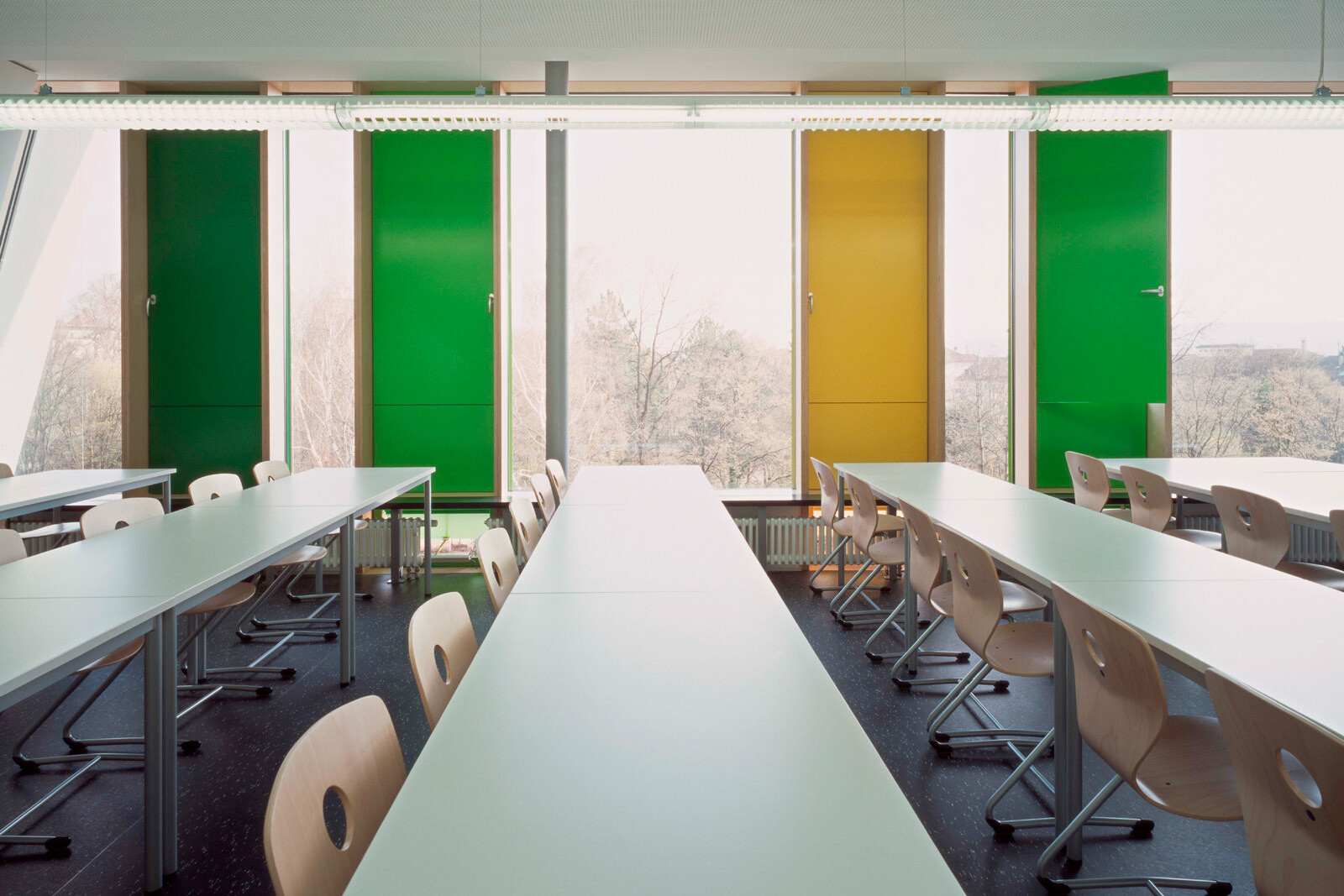 Als Leitmotiv für die Erweiterung des Schulgebäudes aus den 50er Jahren diente das Bild einer Karosserie. Damit steht die Architektur des Gebäudes in direktem Zusammenhang mit dem Namensgeber der Schule, dem Automobilkonstrukteur Wilhelm Maybach sowie den Berufsfeldern Metalltechnik, Automobil- und Kraftfahrzeugmechanik, die hier unterrichtet werden. Die Aufstockung ist aus wirtschaftlichen Gründen als Zweibundanlage konzipiert mit einem eigenen Tragwerk, welches über das bestehende Schulgebäude gestülpt wurde. Eine Besonderheit der völlig losgelösten Konstruktion: Sie kann ohne umfangreiche Arbeiten am Bestand wieder abgetragen werden. Das ist im Hinblick auf die demographische Entwicklung der Schülerzahlen sowie unter nachhaltigen Gesichtspunkten eine interessante Lösung.